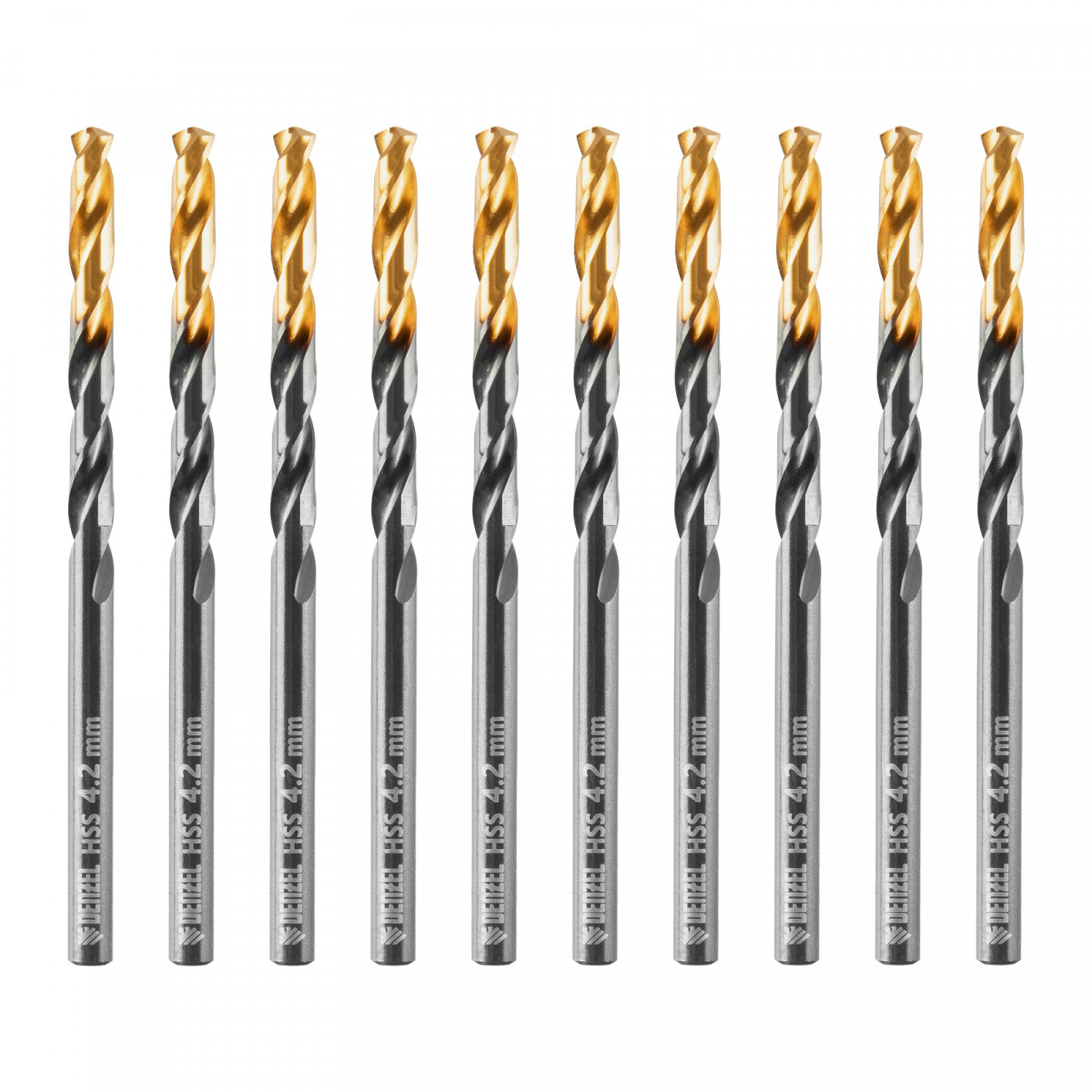 Сверло по металлу, 4,2 мм, HSS-Tin, Golden Tip, 10 шт. Denzel