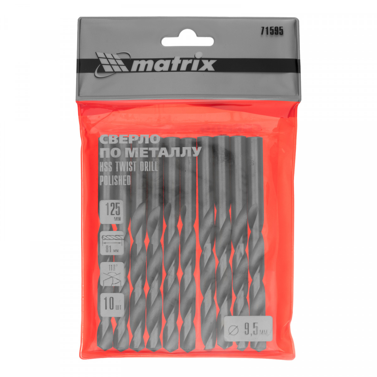 Сверло по металлу, 9.5 мм, полированное, HSS, 10 шт, цилиндрический хвостовик Matrix