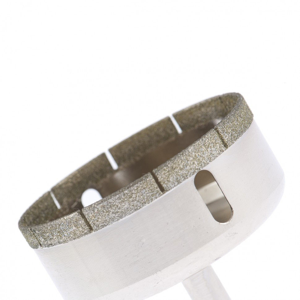 Сверло Сибртех 726707 размером 70 х 55 мм, с цилиндрическим хвостовиком, используется для получения ровных отверстий без сколов в стекле и керамической плитке. Устанавливается в патрон дрели или шуруповерта, работающих в диапазоне 350-700 об/мин. Во время работы рекомендуется применять водяное охлаждение — это существенно увеличит ресурс оснастки. Использование кондуктора (арт. 72830) позволяет точно позиционировать сверло и облегчает засверливание. Оснастка подходит для выполнения работ небольшого объема и рекомендована для использования в быту.
