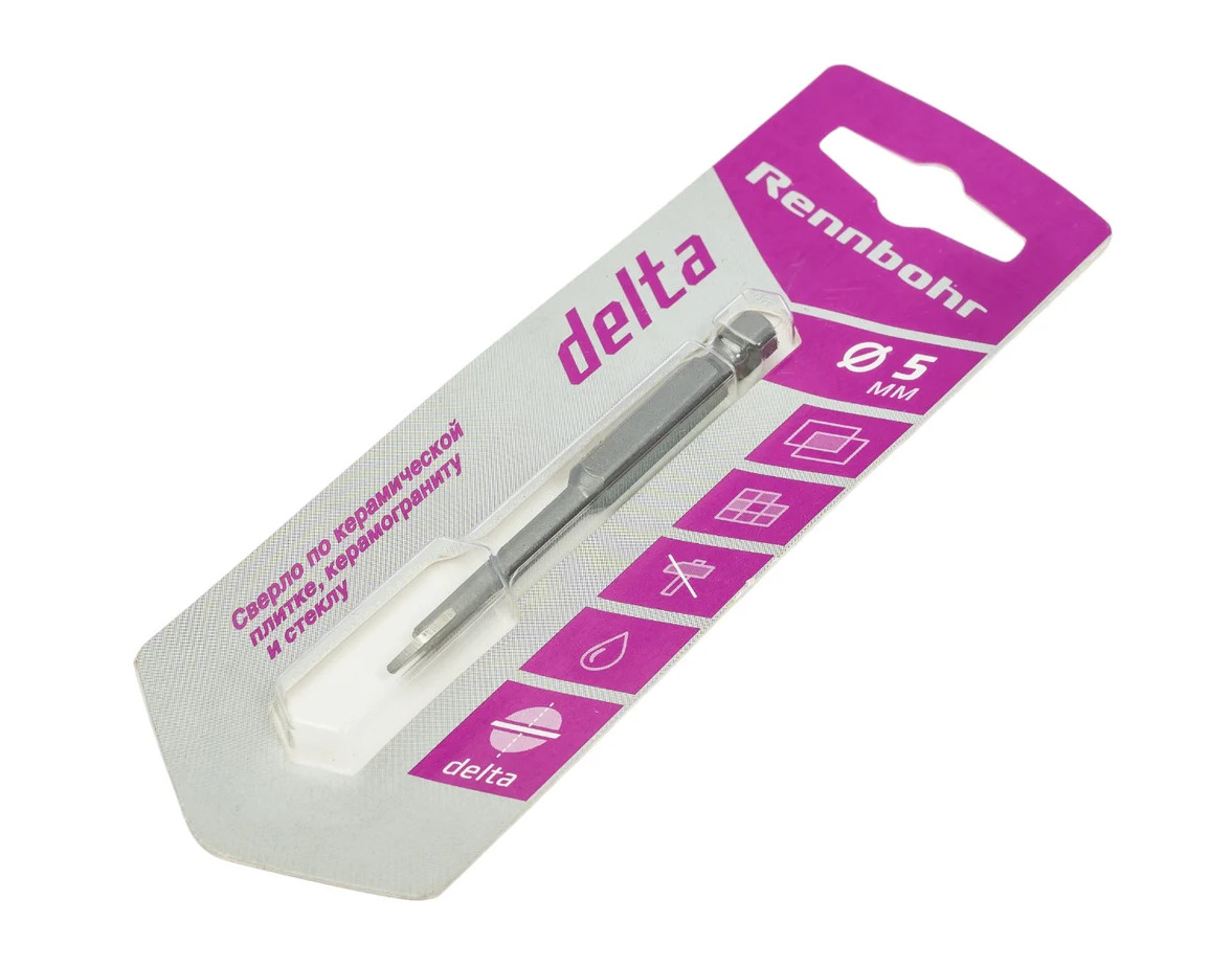 Сверло по стеклу и керамике Ø 5.0х70.0 мм ш/хв Rennbohr Delta блистер