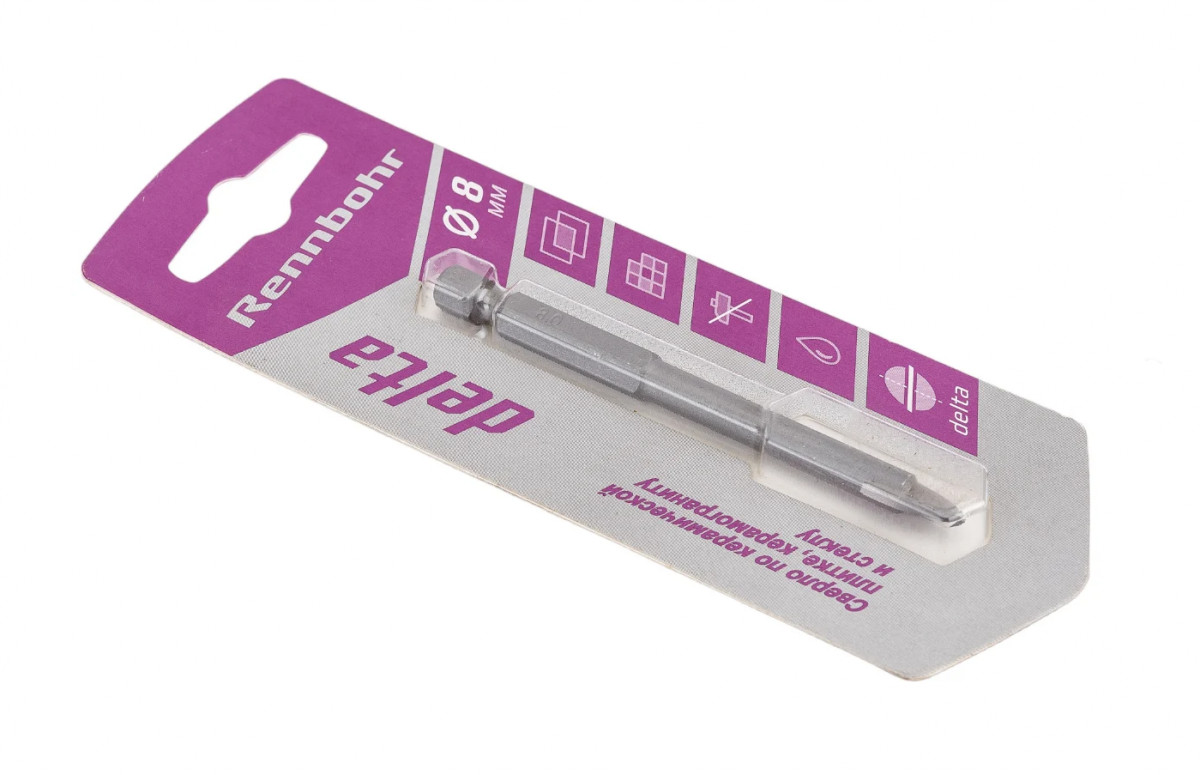 Сверло по стеклу и керамике Ø 8.0х75.0 мм ш/хв Rennbohr Delta блистер