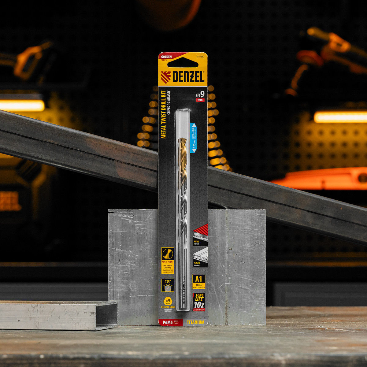 Сверло спиральное по металлу 9 х 175 мм, Р6М5, Golden Tip, удлиненное Denzel