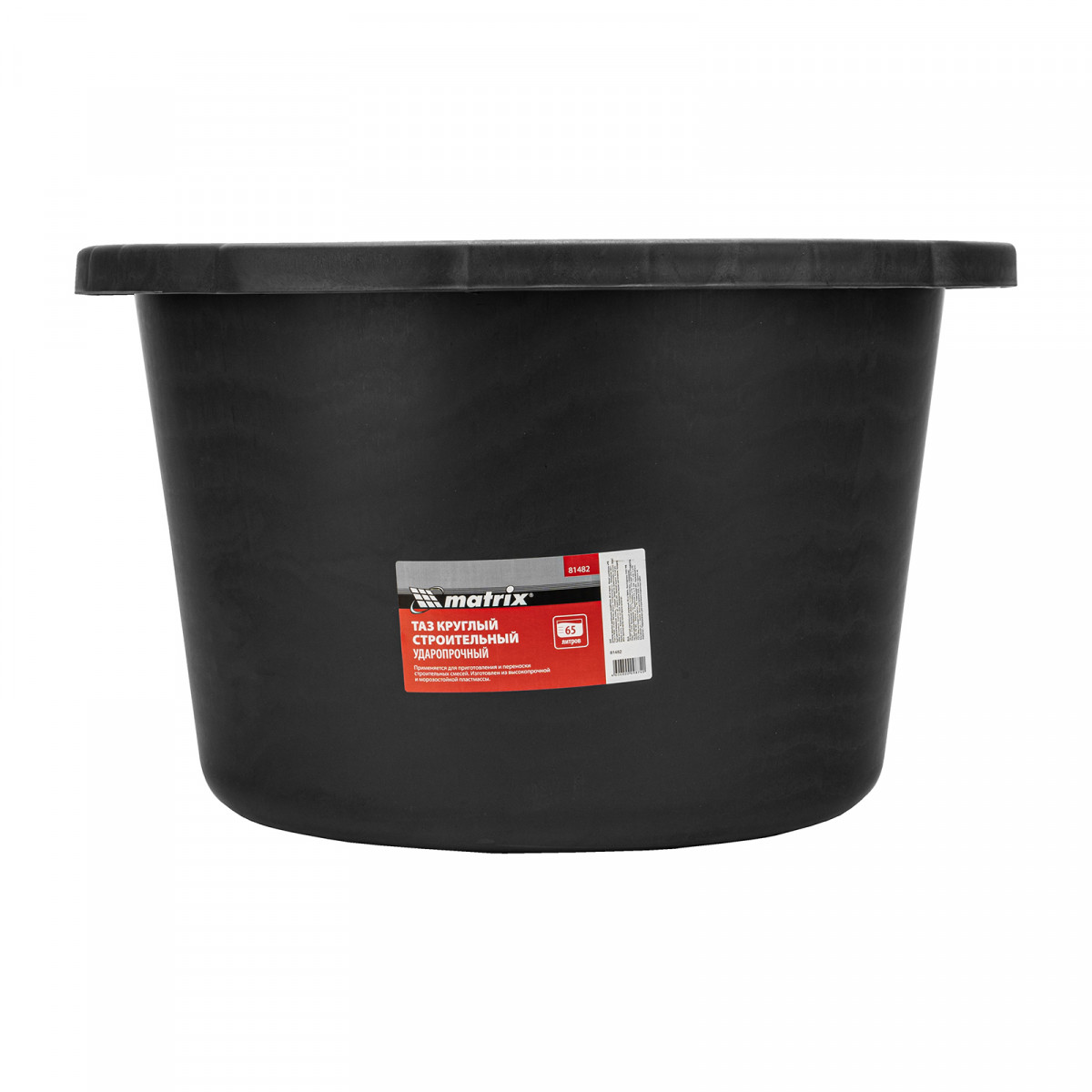 Таз круглый строительный усиленный Matrix 81482 объемом 65 л предназначен для замешивания строительных растворов любого типа при проведении ремонтно-отделочных работ. Благодаря диаметру 600 мм для приготовления смеси удобно использовать различный отделочный инструмент (шпатели, кисти). Пригодится такой таз и в быту: он удобен для хранения сыпучих материалов, сбора и утилизации мусора, проведения влажной уборки.