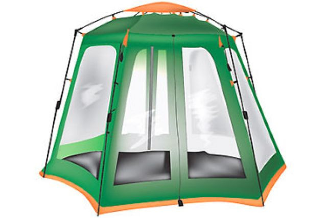 Быстро устанавливается и собирается, защищает от солнца, небольшого дождя и, главное, от насекомых.Высота тента позволяет стоять в полный рост.Все стороны тента полностью продуваемые.Времы установки 1 минута.Форма тента: полусфера.Назначение: кемпинговый.Каркас: West house со стальными (20мм) и стекловолоконными дугами (11мм).Противомоскитная сетка: есть.Вес тента: 9,3 кг.