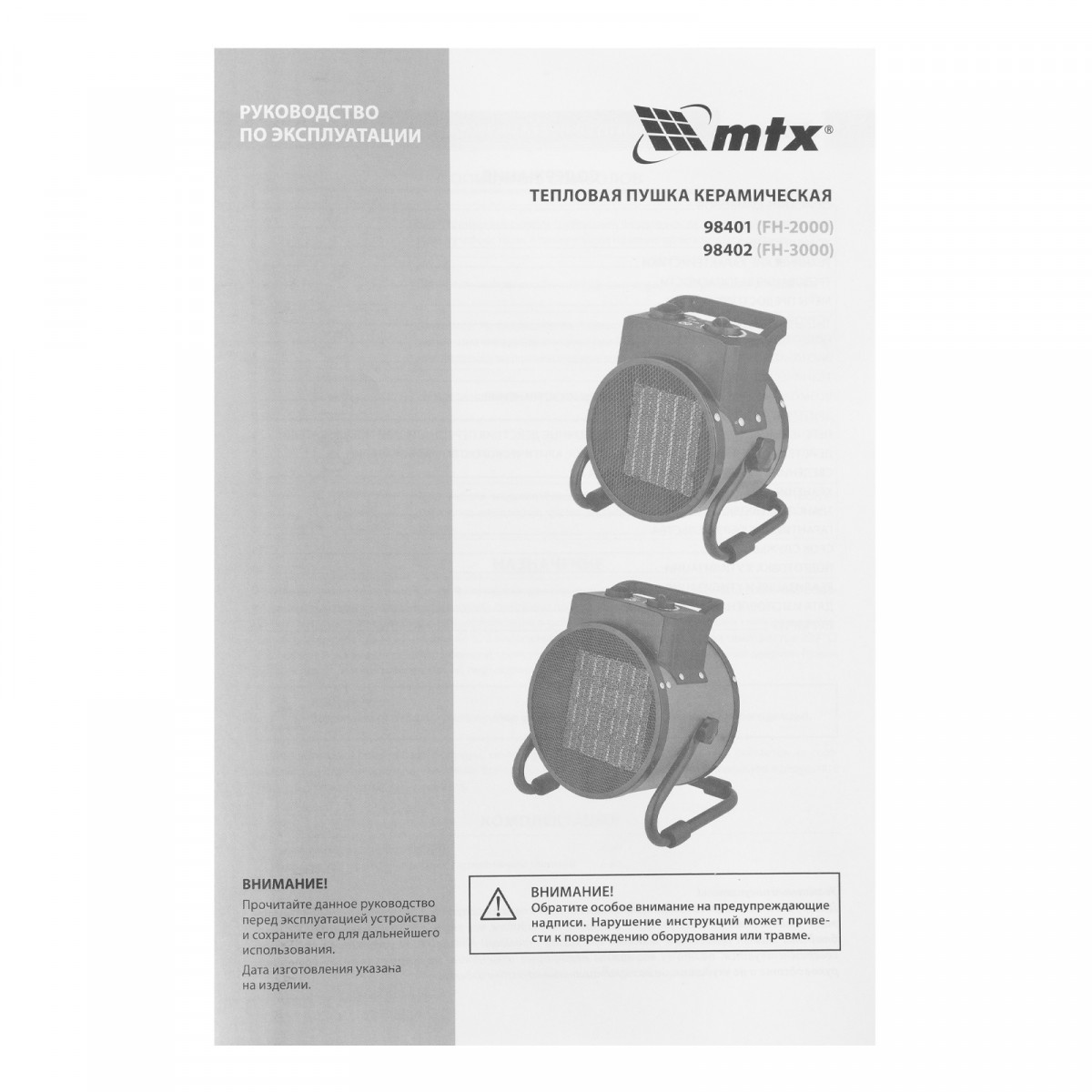 Тепловая пушка - 1 штРуководство по эксплуатации с гарантийным талоном - 1 шт
