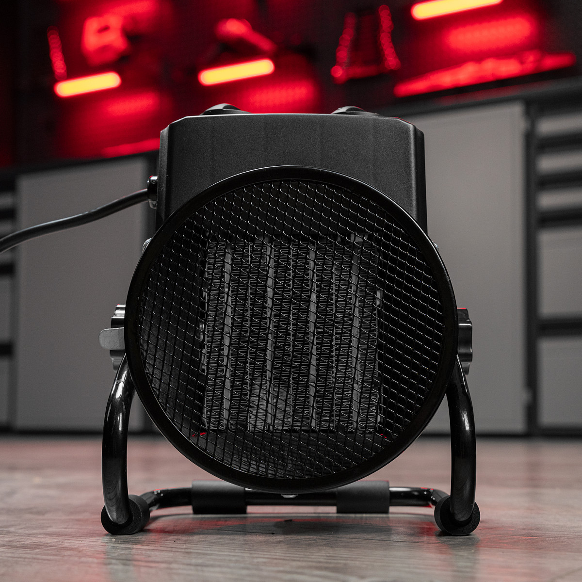 - Эргономичность — компактная тепловая пушка весит 1,4 кг, удобная рукоятка упрощает перемещение.