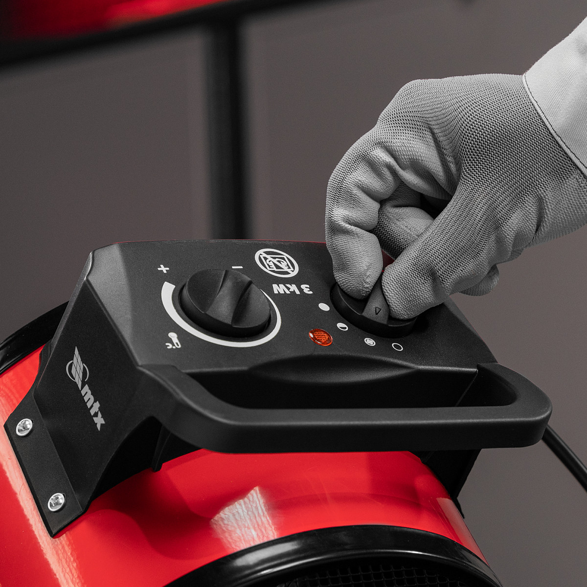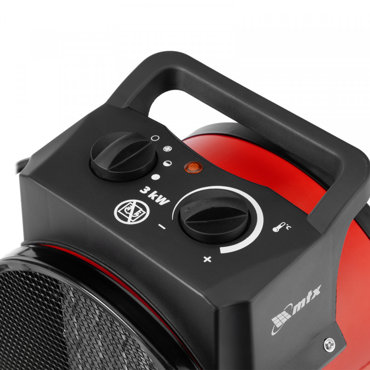 Керамическая тепловая пушка MTX FH-3000 98402 с термостатом, максимальной мощностью 3 кВт, работает в 3 режимах и предназначена для обогрева складов, мастерских и других нежилых помещений площадью до 30 м2. Также может использоваться для быстрой просушки различных поверхностей, например, стяжек пола, оштукатуренных и окрашенных стен.