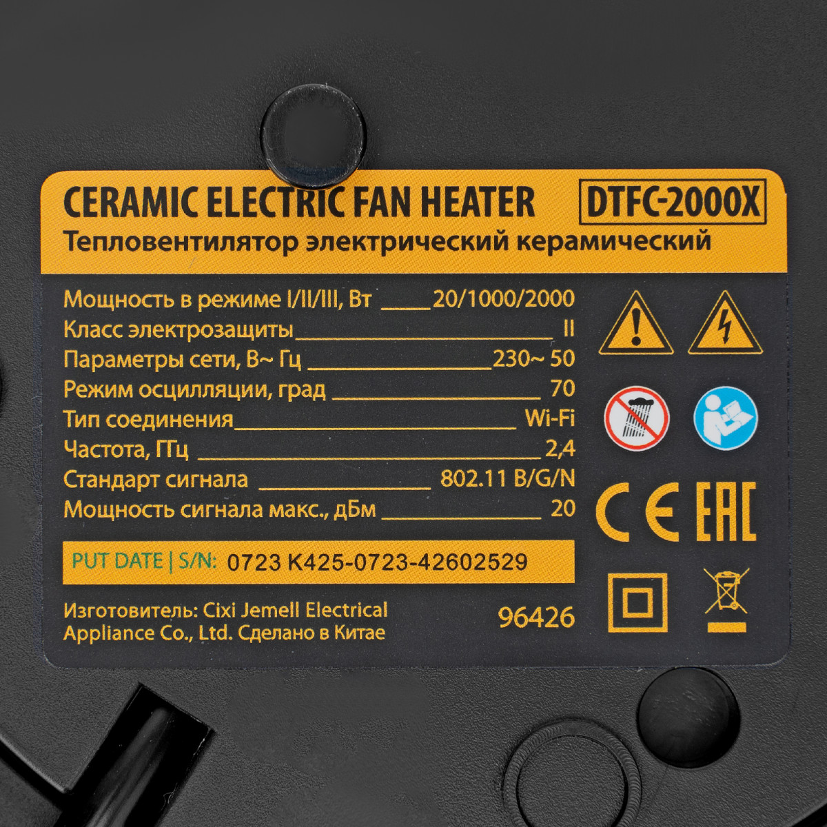 Тепловентилятор Denzel DTFC-2000X 96426 мощностью 2 кВт, с керамическим нагревательным элементом, пультом и динамиком, с функцией вращения и возможностью подключения по Wi-Fi, имеет 3 режима работы. Предназначен для обогрева и вентилирования бытовых помещений площадью до 20 м2. Позволяет поддерживать комфортный климатический режим в любое время года. Способен работать в режиме вентиляции, обогрева теплым (1000 Вт) и горячим воздухом (2000 Вт). В комплект поставки входит пульт дистанционного управления. Также можно подключить тепловентилятор к сети Интернет и управлять им из любой точки мира при помощи телефона или планшета с установленным приложением.