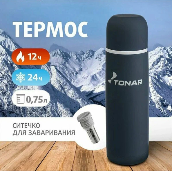 Термос оснащен двойными стенками с вакуумной изоляцией, что позволяет долго сохранять температуру как горячих, так и холодных напитков. Изготовлен из высококачественной нержавеющей стали, с защитным прорезиненным покрытием. Термос снабжен надежной глухой выкручивающейся пробкой. Пробка термоса имеет емкость для переноски сыпучих продуктов (чай, травы, сахар). Термос укомплектован ситечком для заваривания. Вместительная крышка-чашка (180мл). Благодаря узкой вытянутой форме термос легко помещается в рюкзаке или портфеле. Характеристики: