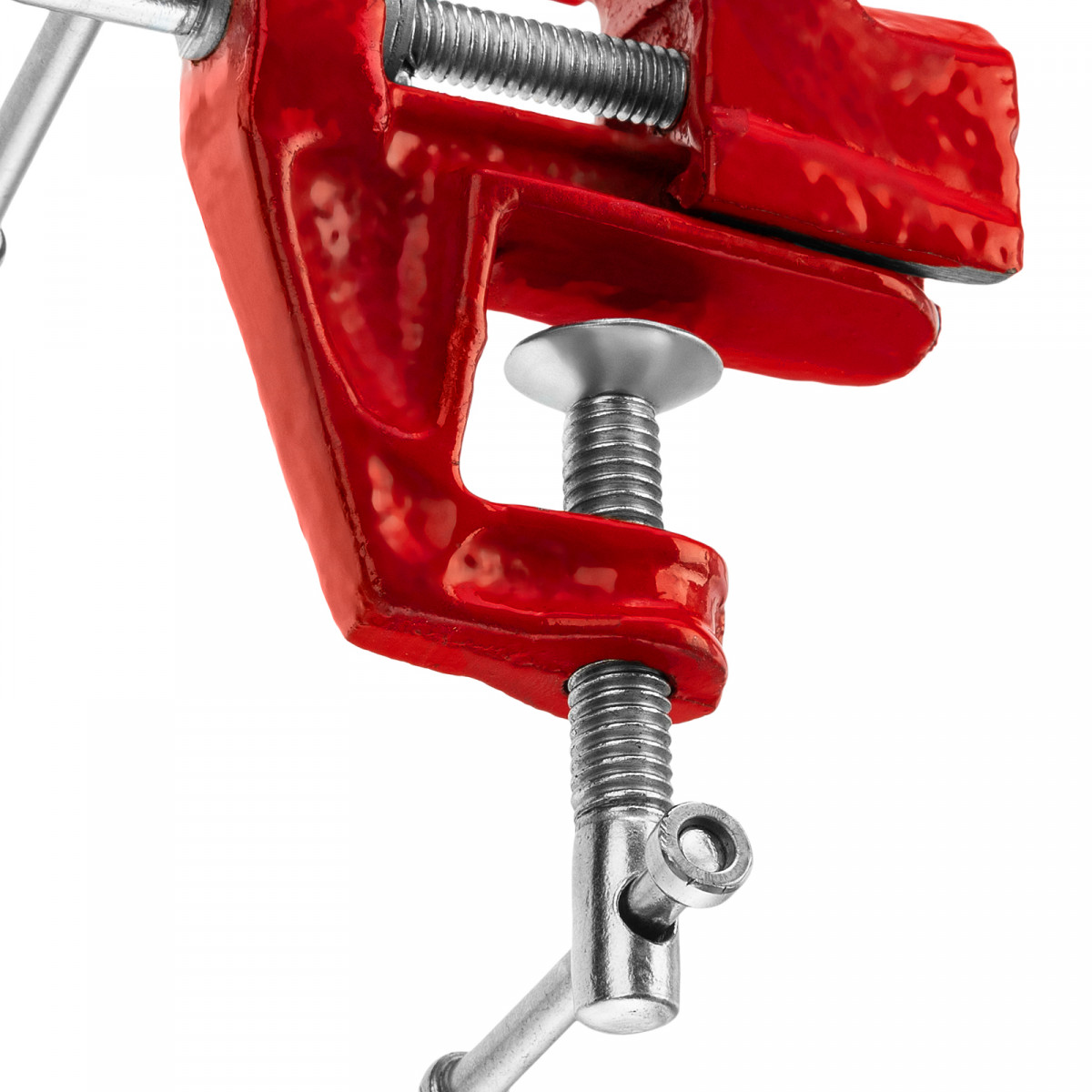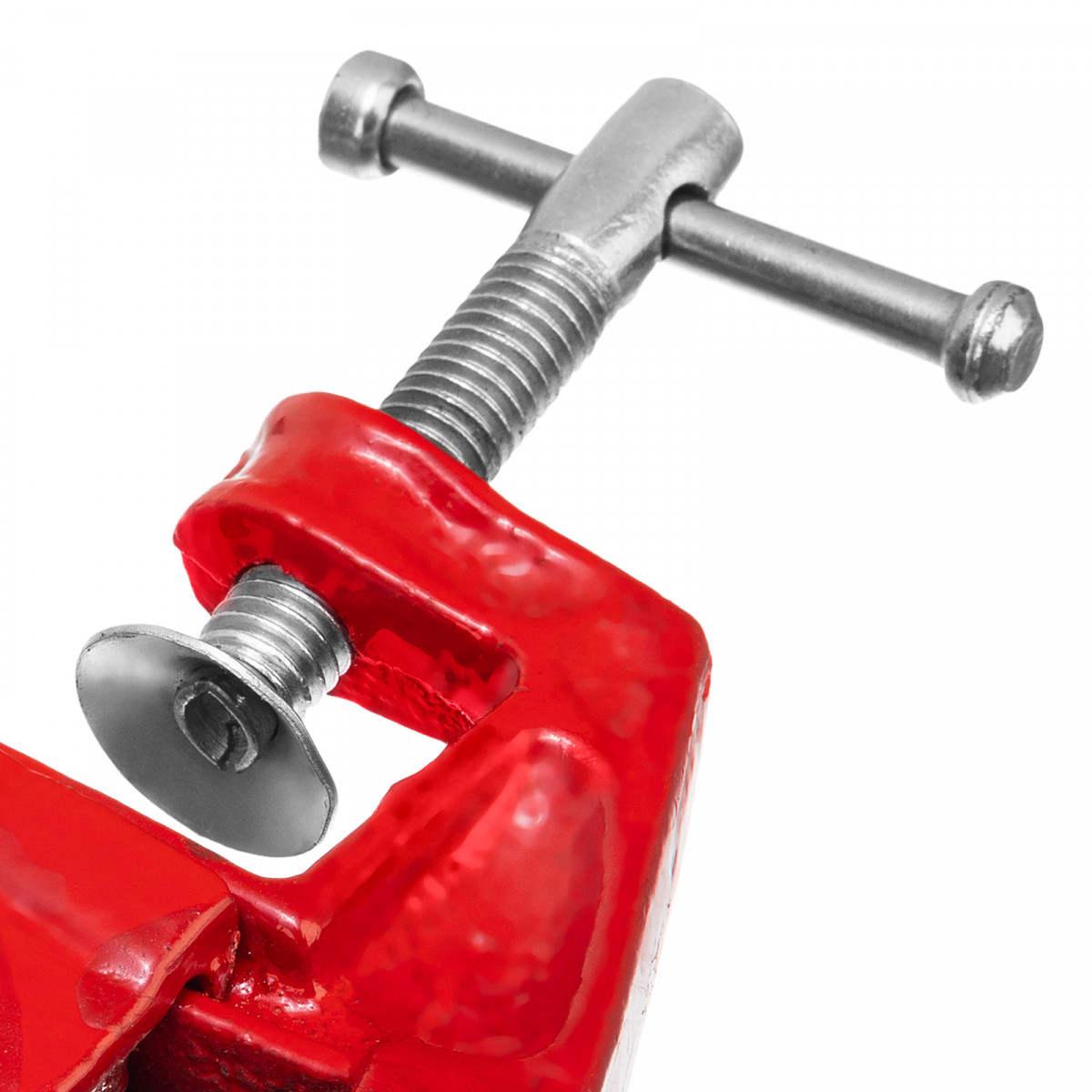 Тиски Sparta 185055 с губками шириной 40 мм и креплением для стола позволяют надежно зафиксировать небольшие деревянные детали. Пригодятся во время столярных и слесарных работ в мастерской или гараже. Рабочий ход губок составляет 30 мм, что позволяет зажимать и удерживать небольшие предметы.