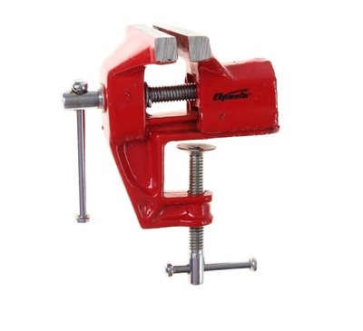 Тиски универсального типа. Осуществляют крепеж металлических и деревянных заготовок для облегчения их обработки. Фиксируют небольшие изделия. Тиски имеют горизонтальный зажим. Надежно фиксируются к столешнице с помощью ручного винта. Устанавливаются легко. Фиксирующая внутренняя поверхность губок ровная. Длина губок 40 мм. Фиксация заготовок производится вручную с помощью поворотного рычага на боковой поверхности тисков. Тиски окрашены.