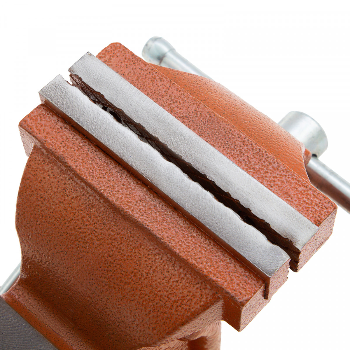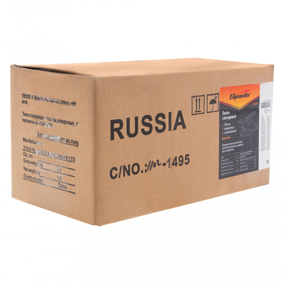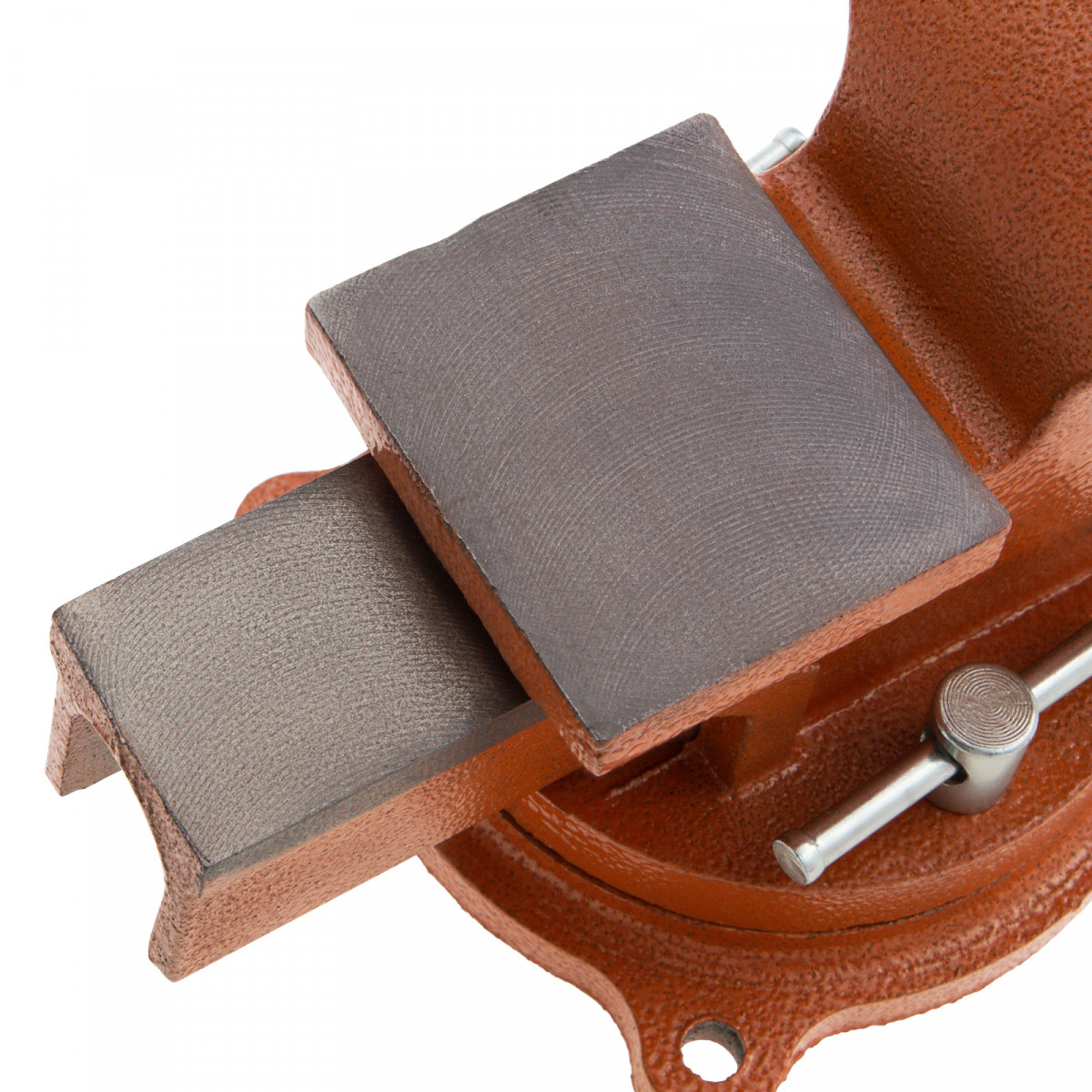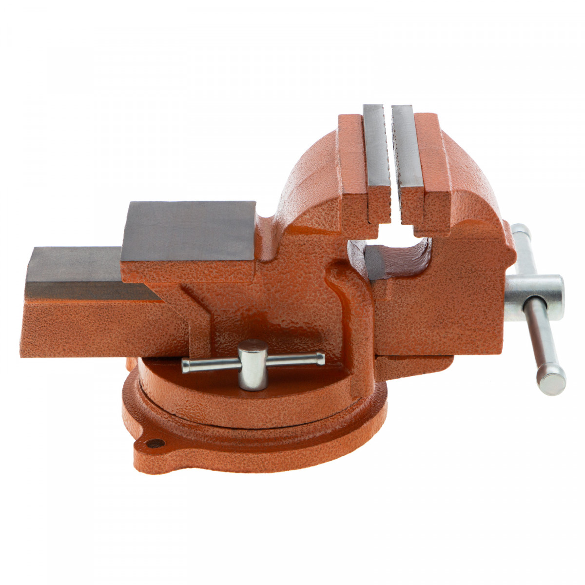 Поворотные слесарные тиски Sparta 186235 с наковальней, ширина губок 100 мм, — это небольшой инструмент для захвата деталей до 75 мм. Будут полезны в частной мастерской или гараже для удобства обработки малогабаритных заготовок.