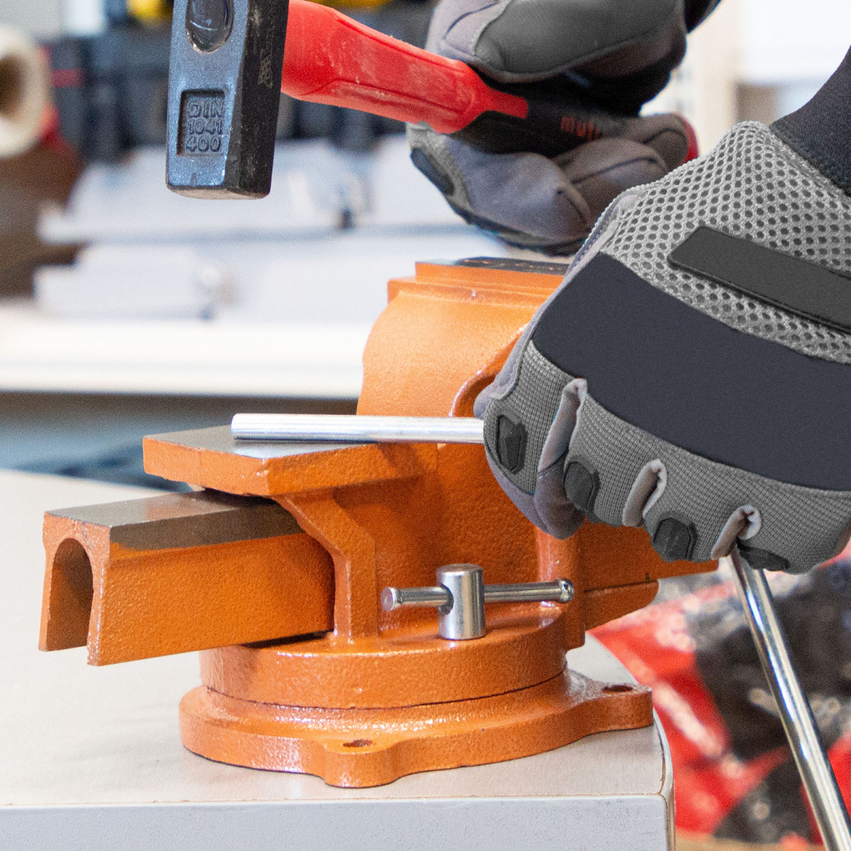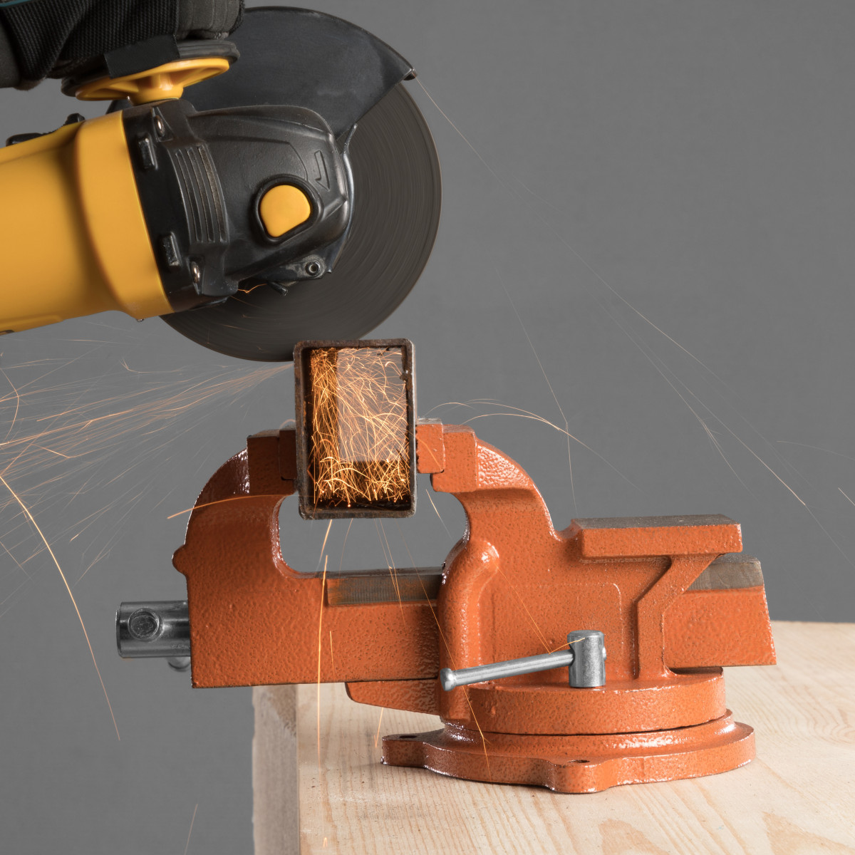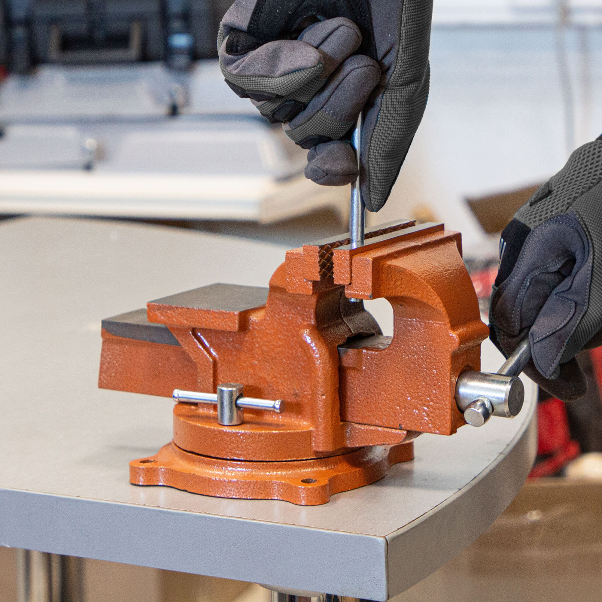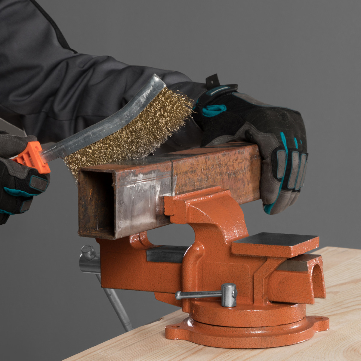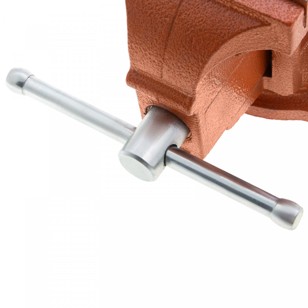 Поворотные слесарные тиски Sparta 186235 с наковальней, ширина губок 100 мм, — это небольшой инструмент для захвата деталей до 75 мм. Будут полезны в частной мастерской или гараже для удобства обработки малогабаритных заготовок.