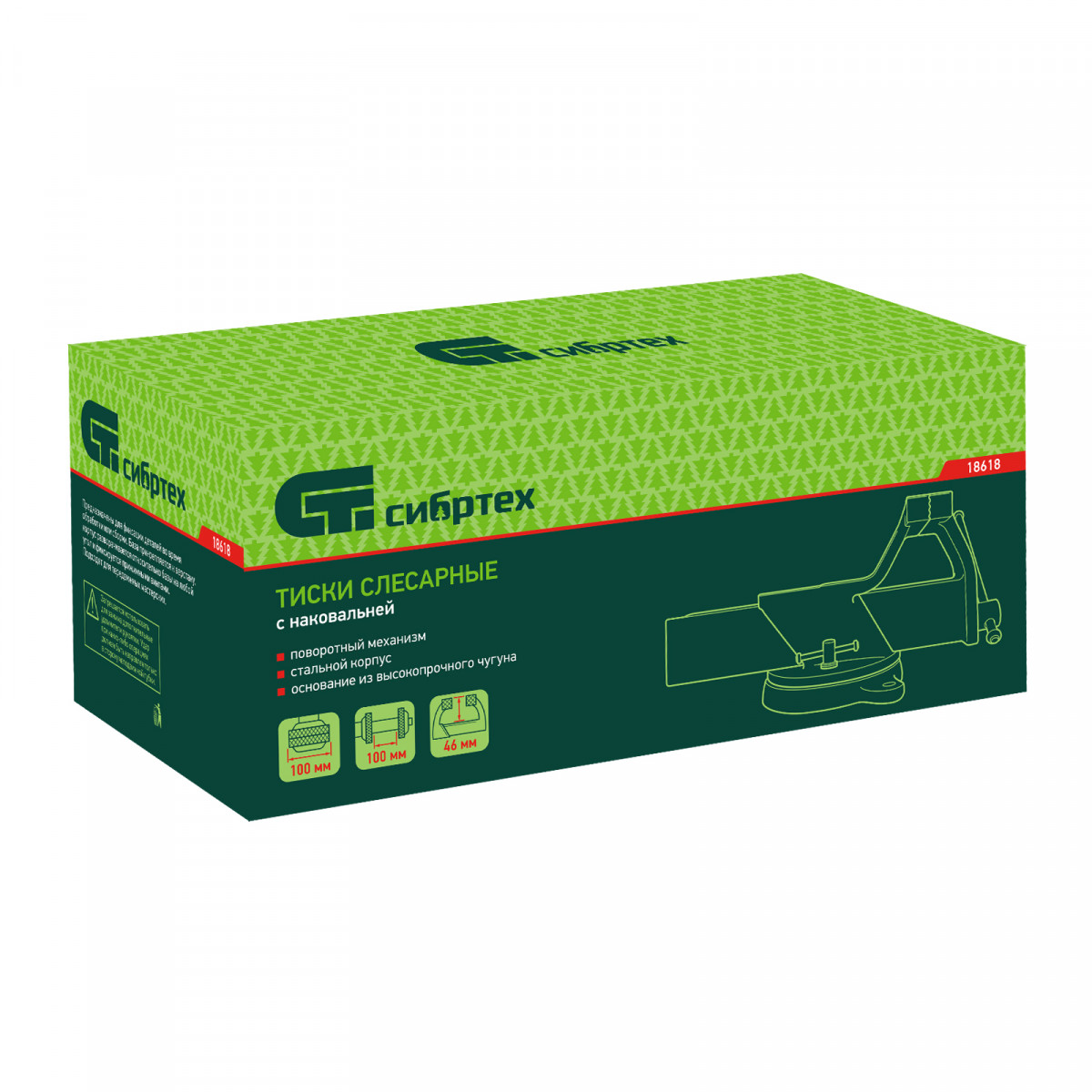 Тиски слесарные, 100 мм, стальные, поворотные Сибртех