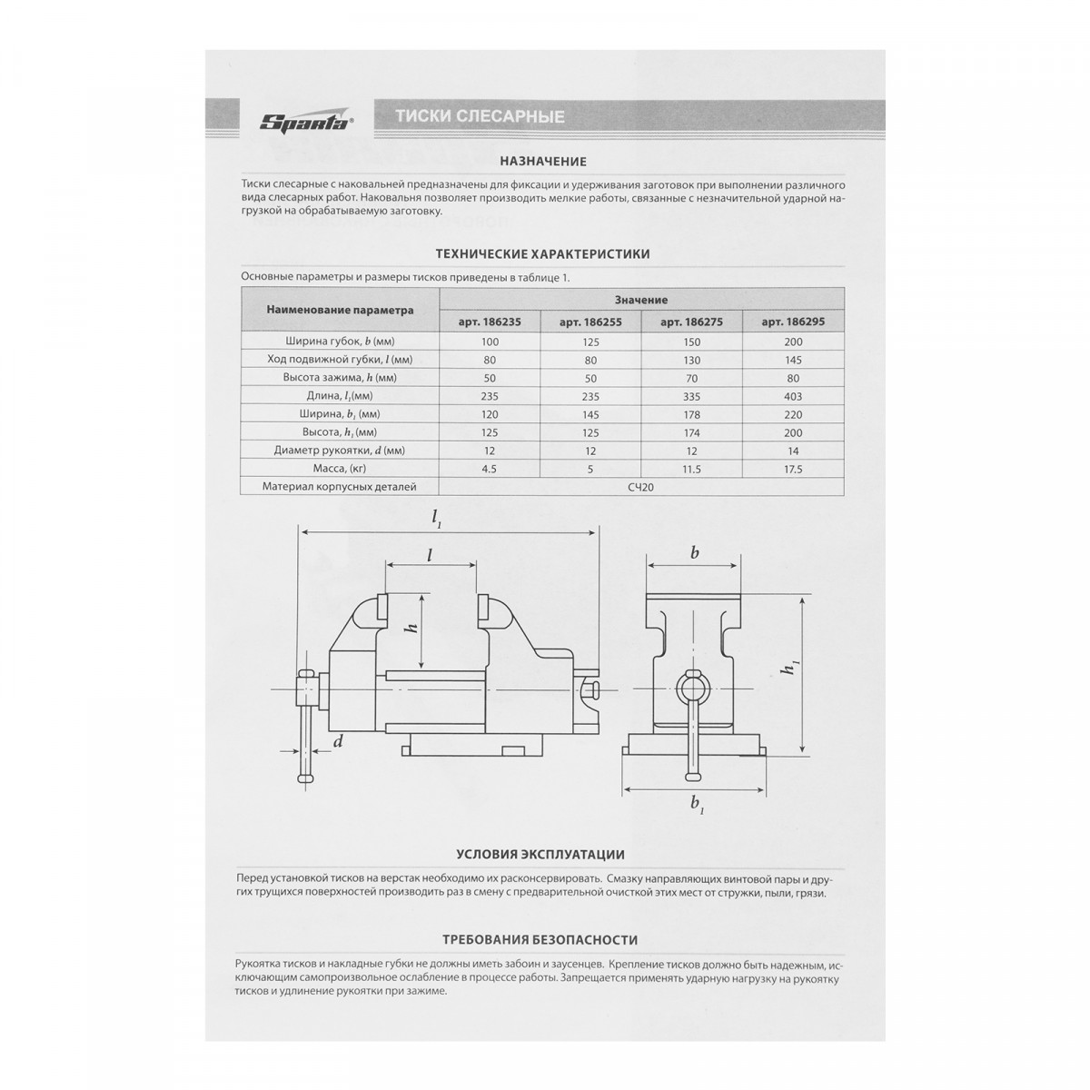 Поворотные слесарные тиски Sparta 186295 с наковальней, ширина губок 200 мм, — это небольшой инструмент для захвата деталей до 150 мм. Будут полезны в частной мастерской или гараже для удобства обработки крупногабаритных заготовок.