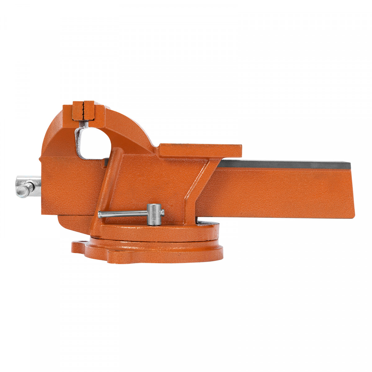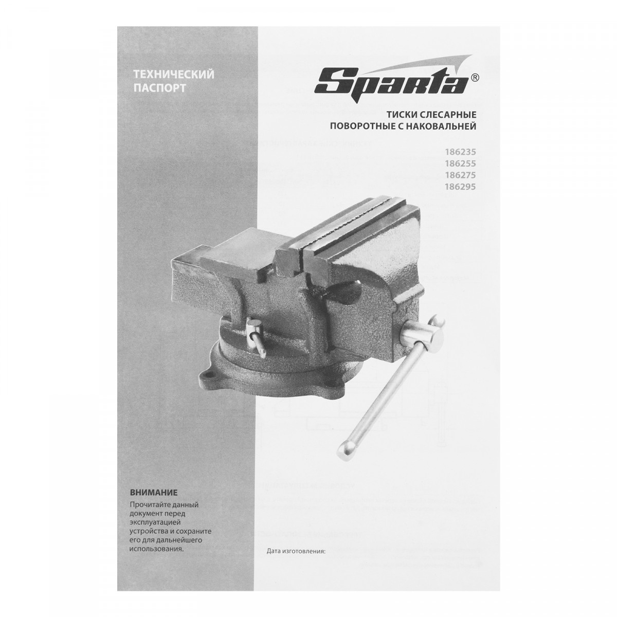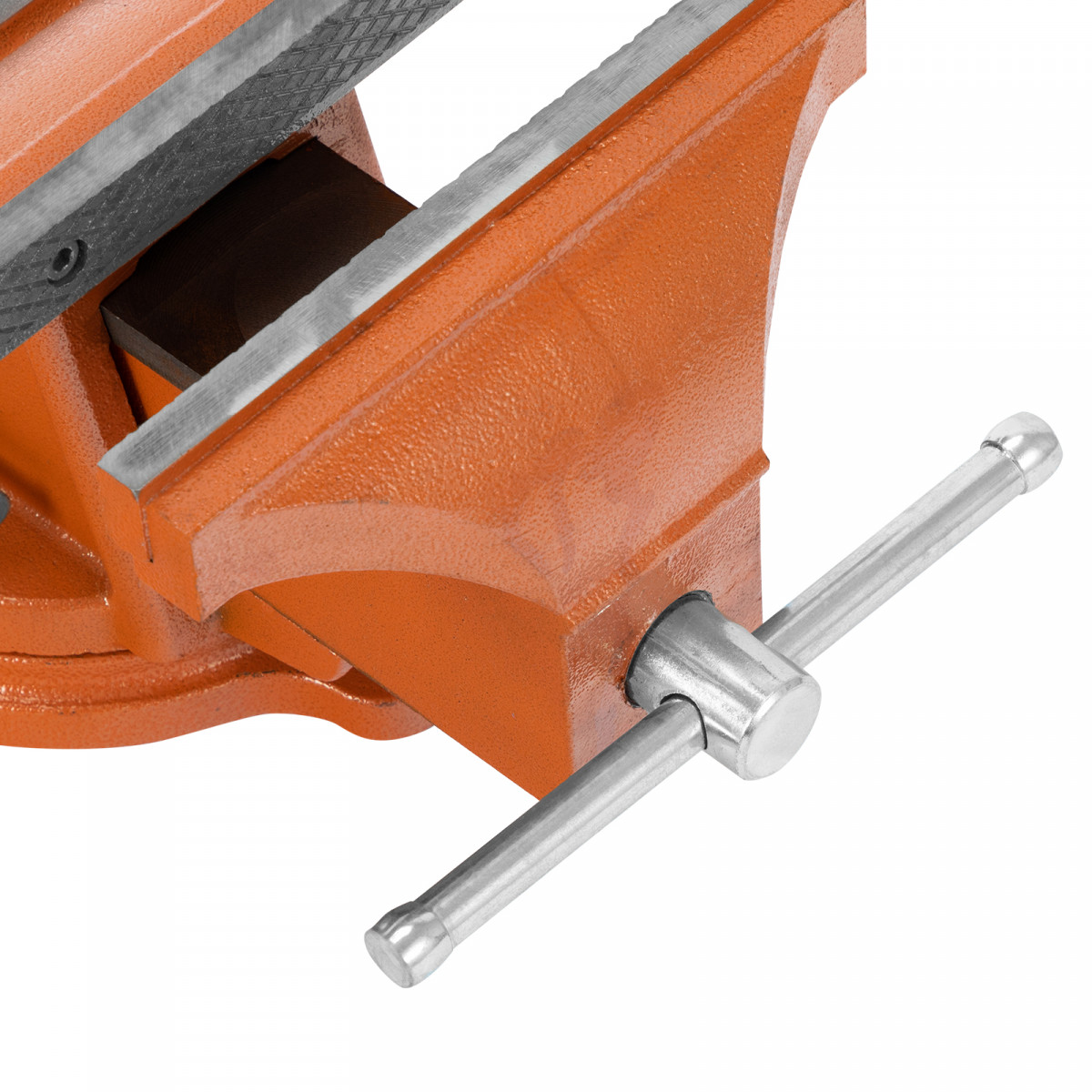 Поворотные тиски Sparta с наковальней обеспечивают высокую прочность благодаря корпусу из чугуна и губкам из стали.