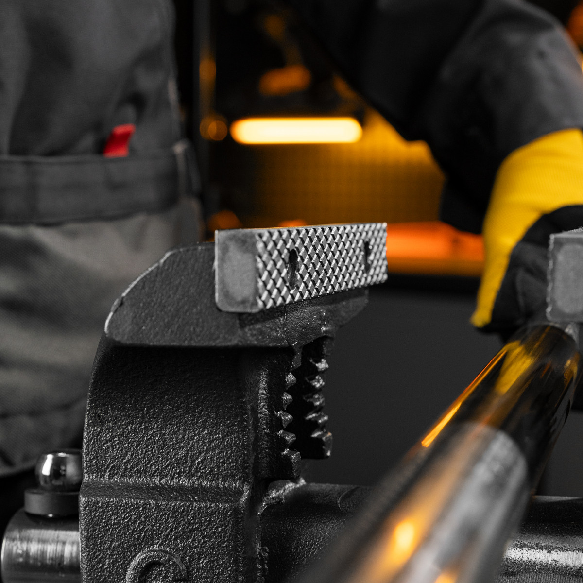 • Функциональность — тиски поворачиваются на 360°, что позволяет менять и выбирать позицию инструмента для удобной работы с заготовкой.
