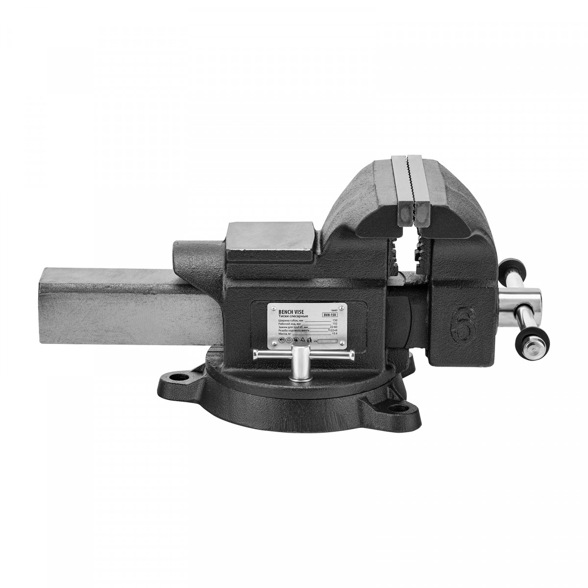 Тиски слесарные BVH-150, 150 мм, поворотные, стальная направляющая, с наковальней //Denzel