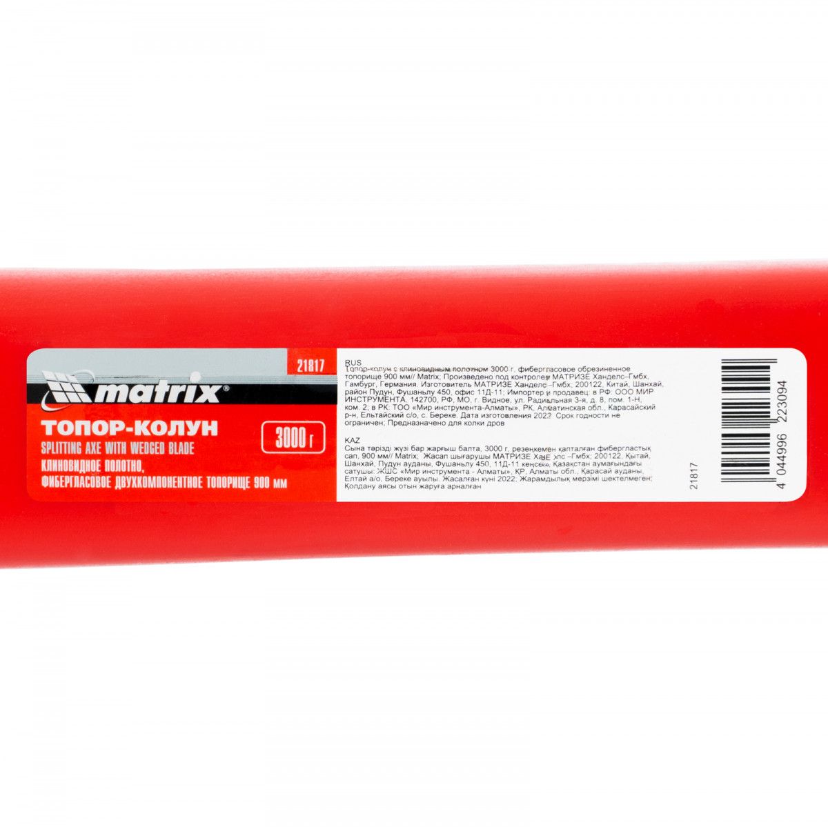 Топор-колун с клиновидным полотном 3000 г, фибергласовое обрезиненное топорище 900 мм Matrix