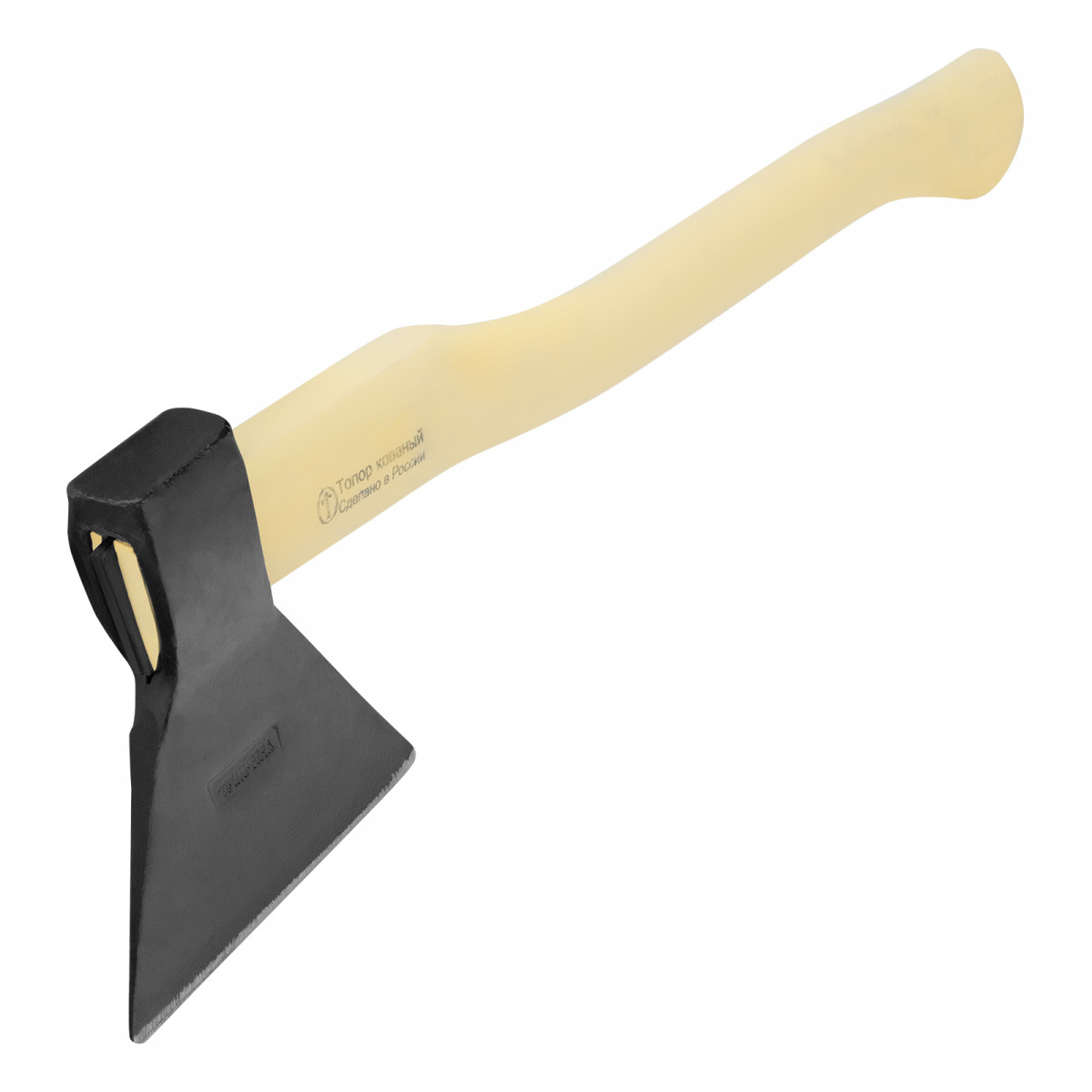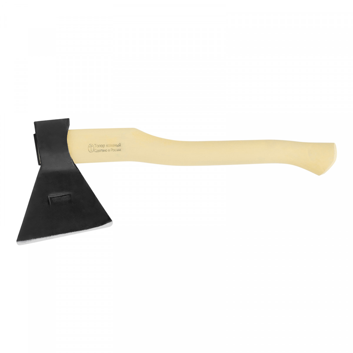 - Устойчивость к разрушению — березовое топорище отшлифовано, покрыто шпатлевкой и пленкой.
