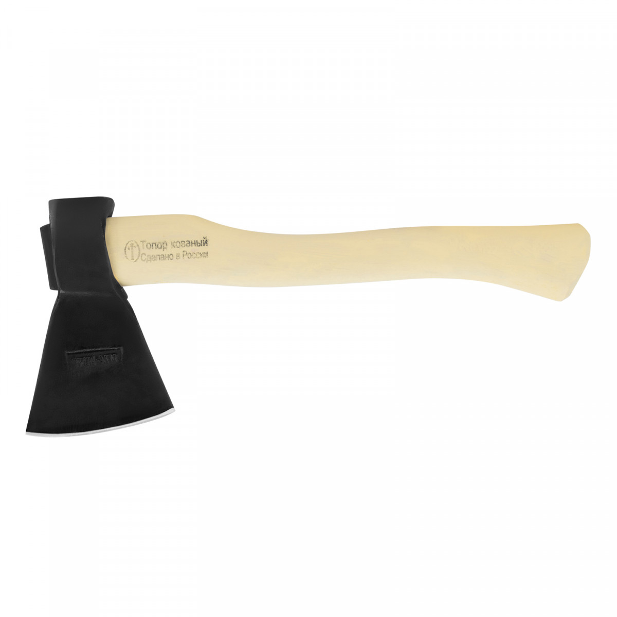 • Надежное топорище — оно изготовлено из древесины, отшлифовано, покрыто защитной пленкой и шпатлевкой.