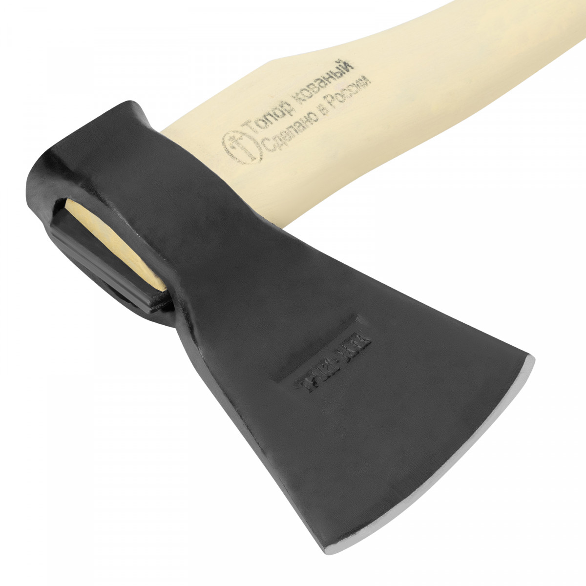 • Прочное соединение головы с топорищем — в месте всада установлен клин.