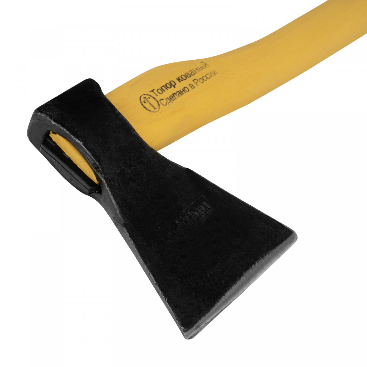 - Прочное соединение головы с топорищем — в месте всада установлен клин.