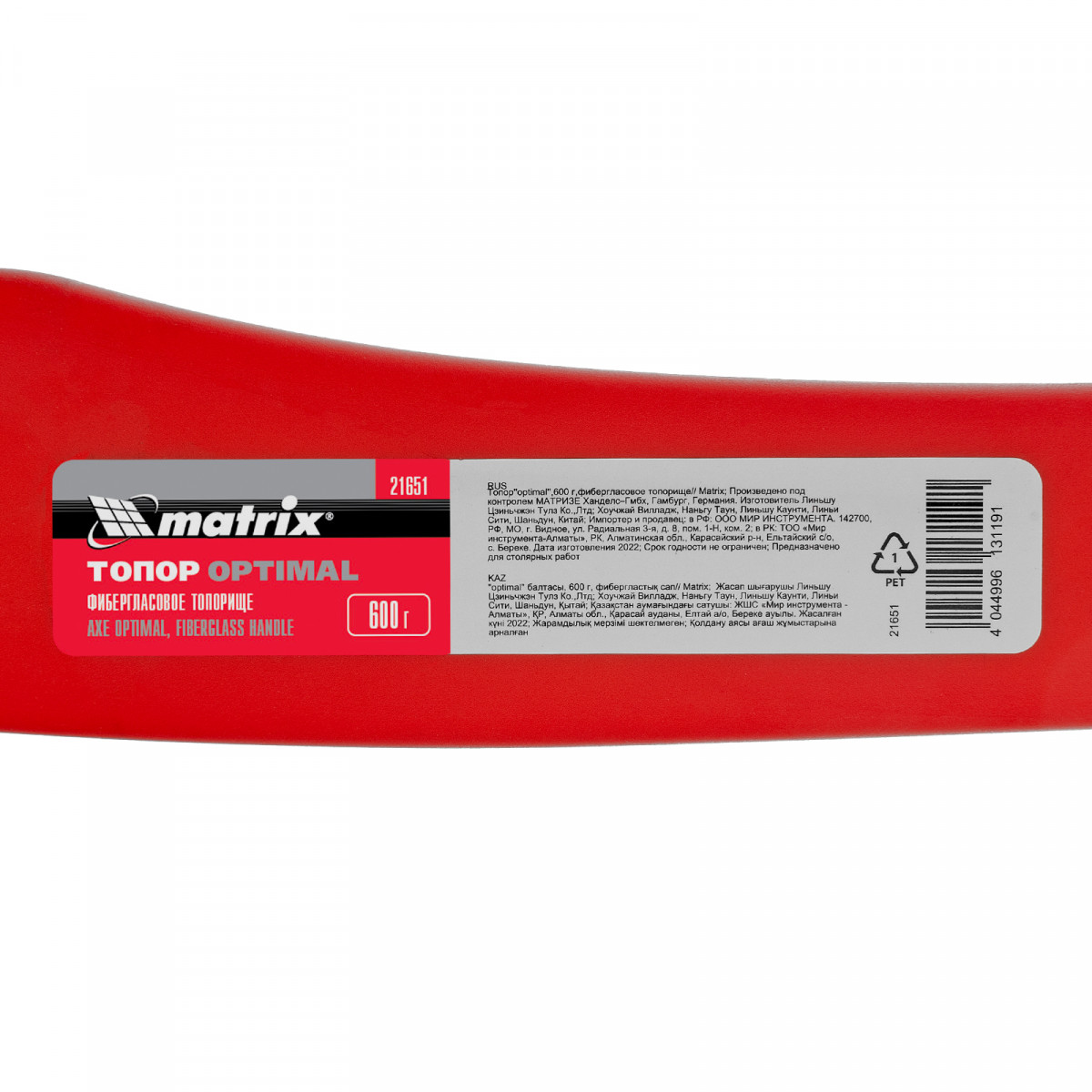 Топор optimal, 600 г, фибергласовое топорище Matrix