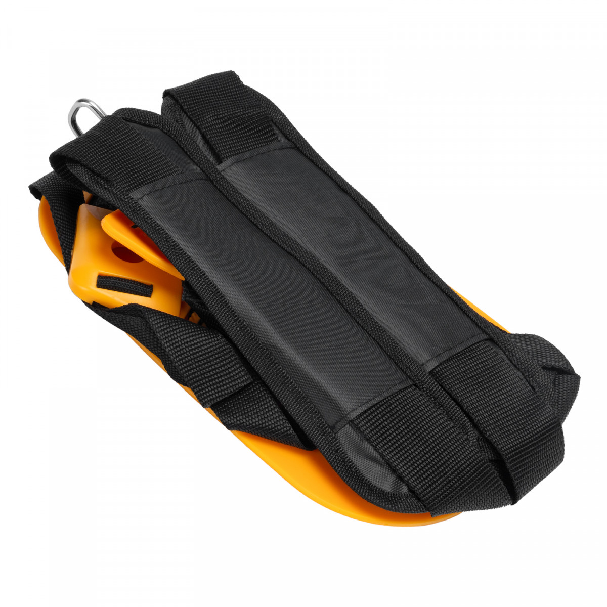 • Комфортная работа — двухплечевой ремень снижает нагрузку на позвоночник и плечи, а специальная пластина защищает бедро от ударов о штангу.