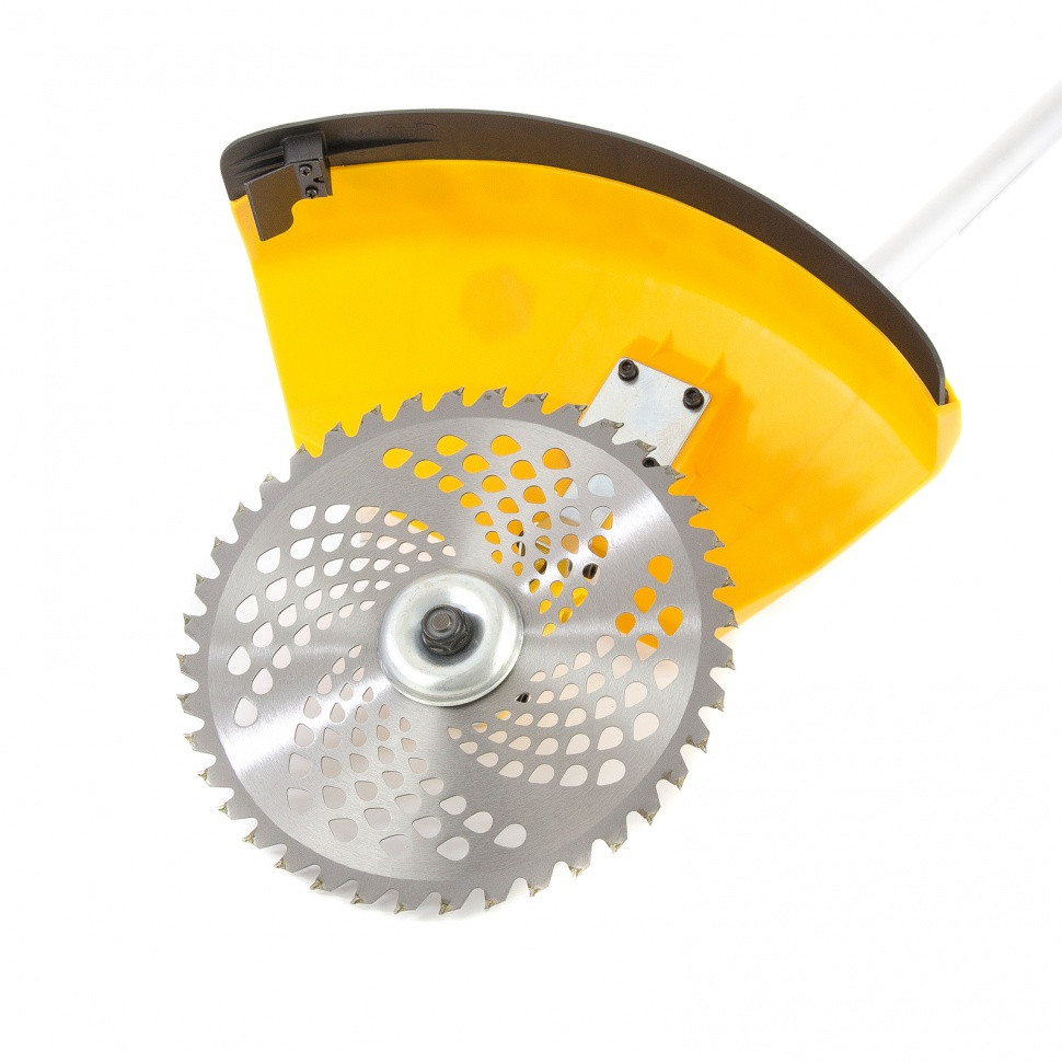 • Безопасность — специальный кожух, прочно закрепленный на штанге, защищает пользователя от разлетающихся камней и веток.