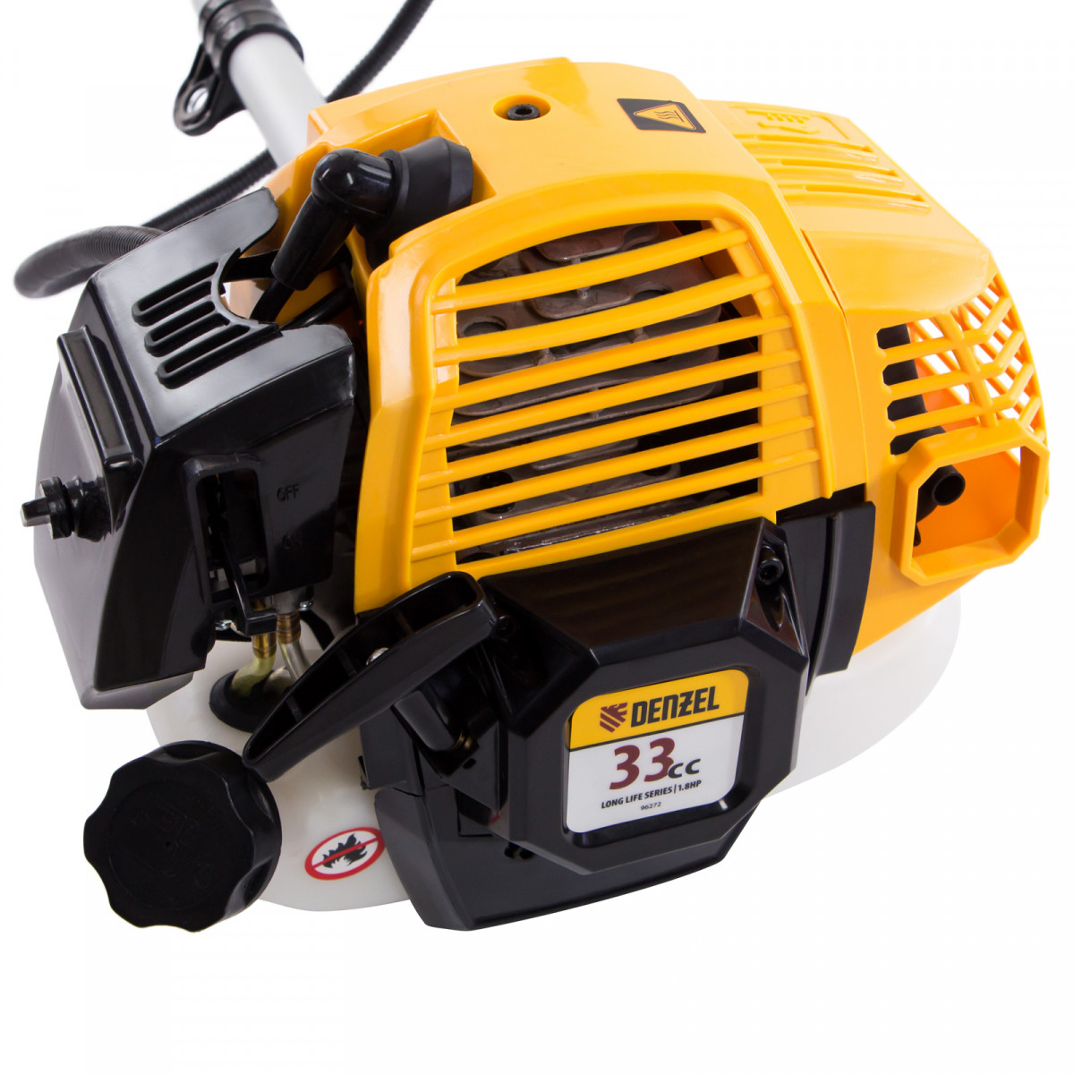 Триммер бензиновый DR-33S, 33 см3, разъемная штанга, состоит из 2 частей Denzel