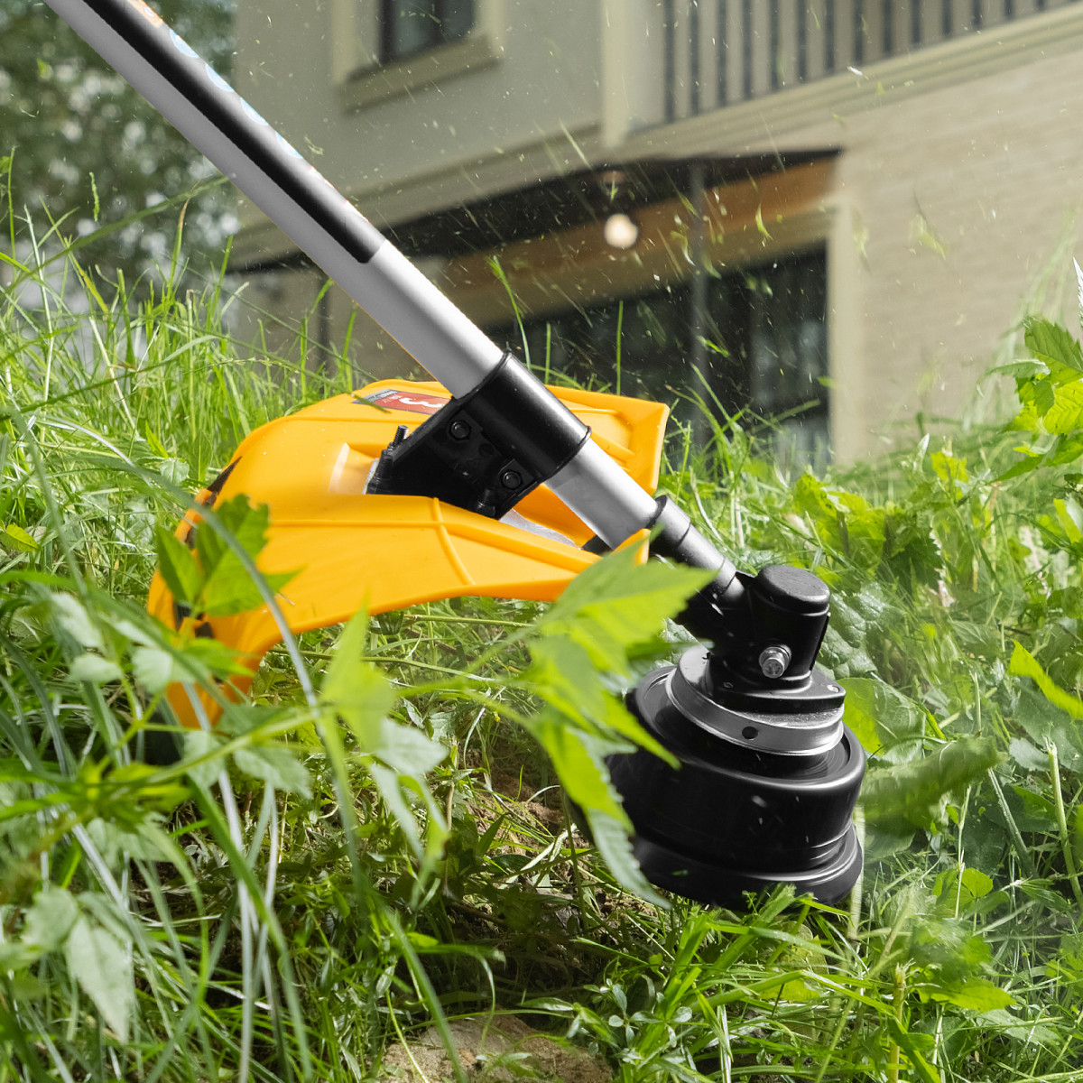 • Удобное управление — асимметричные рукоятки обеспечивают оптимальное положение рук, благодаря весу 6,6 кг триммер легко удерживать и направлять.