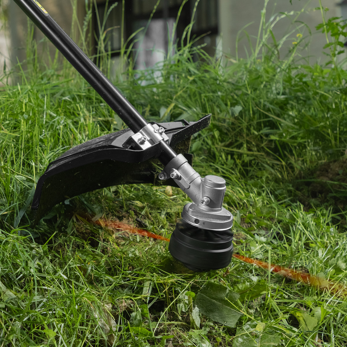 - Эргономичность — плечевой ремень снижает нагрузку на руки, а D-образная ручка обеспечивает надежный хват и облегчает управление триммером.