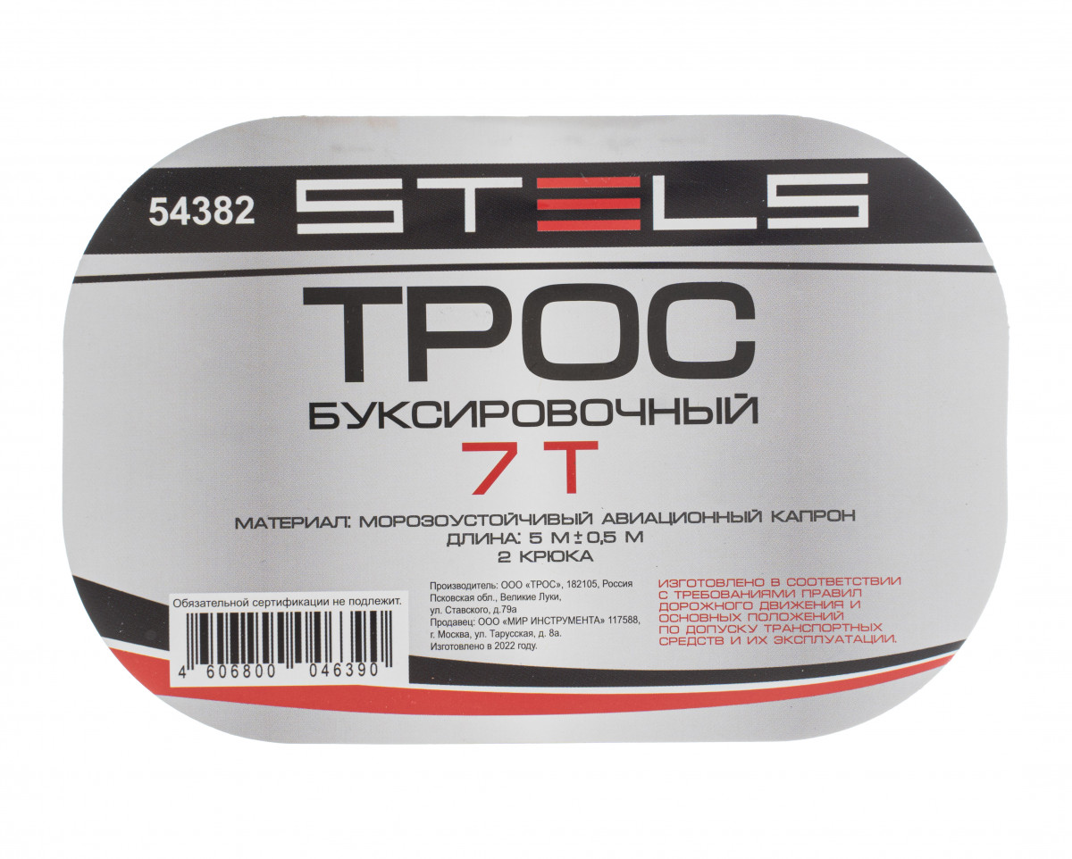 Трос буксировочный Stels 54382 с 2 крюками, поставляющийся в сумке на молнии, используется для буксировки на гибкой сцепке легковых автомобилей массой до 7 тонн. Выручит автолюбителя в сложной ситуации на дороге: если закончилось топливо, сломался двигатель, застряли колеса и т. д.