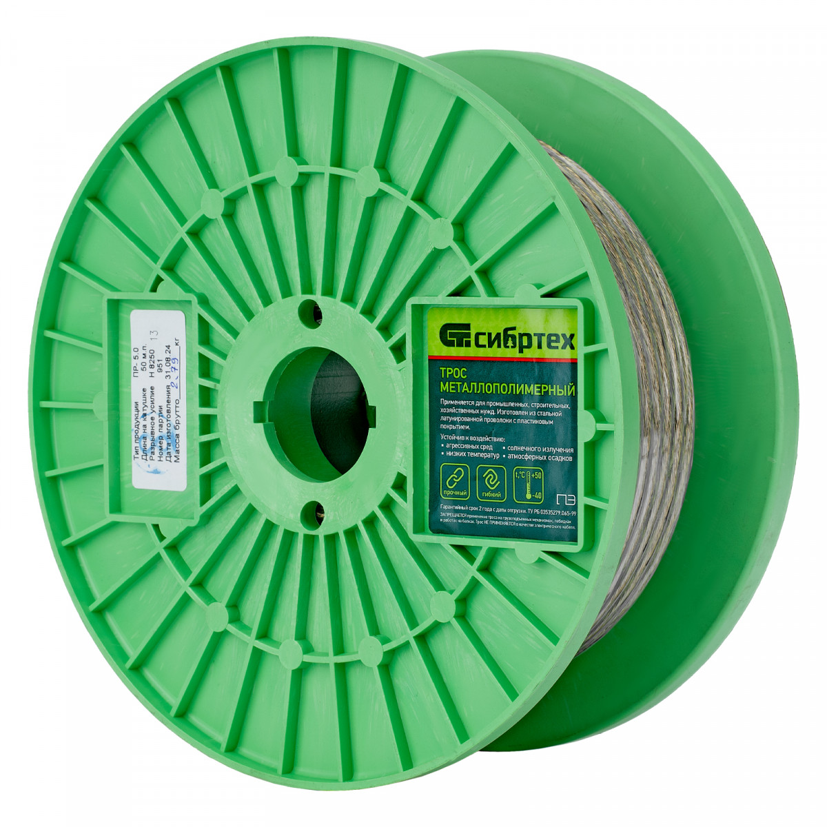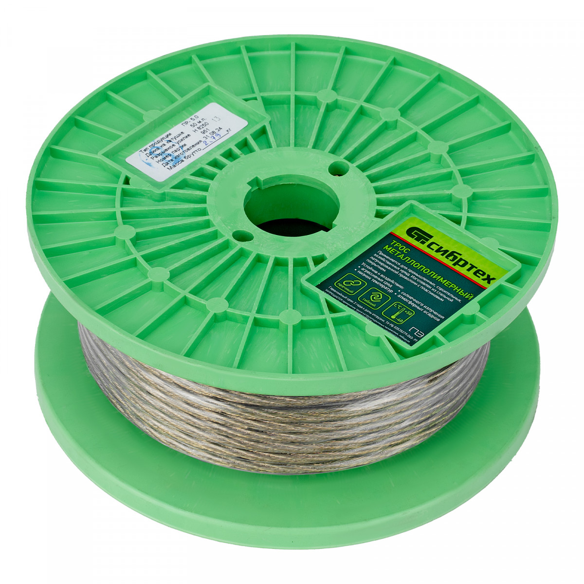 Трос металлополимерный прозрачный ПР-5.0, толщина 4.0 мм, катушка 50 метров Сибртех