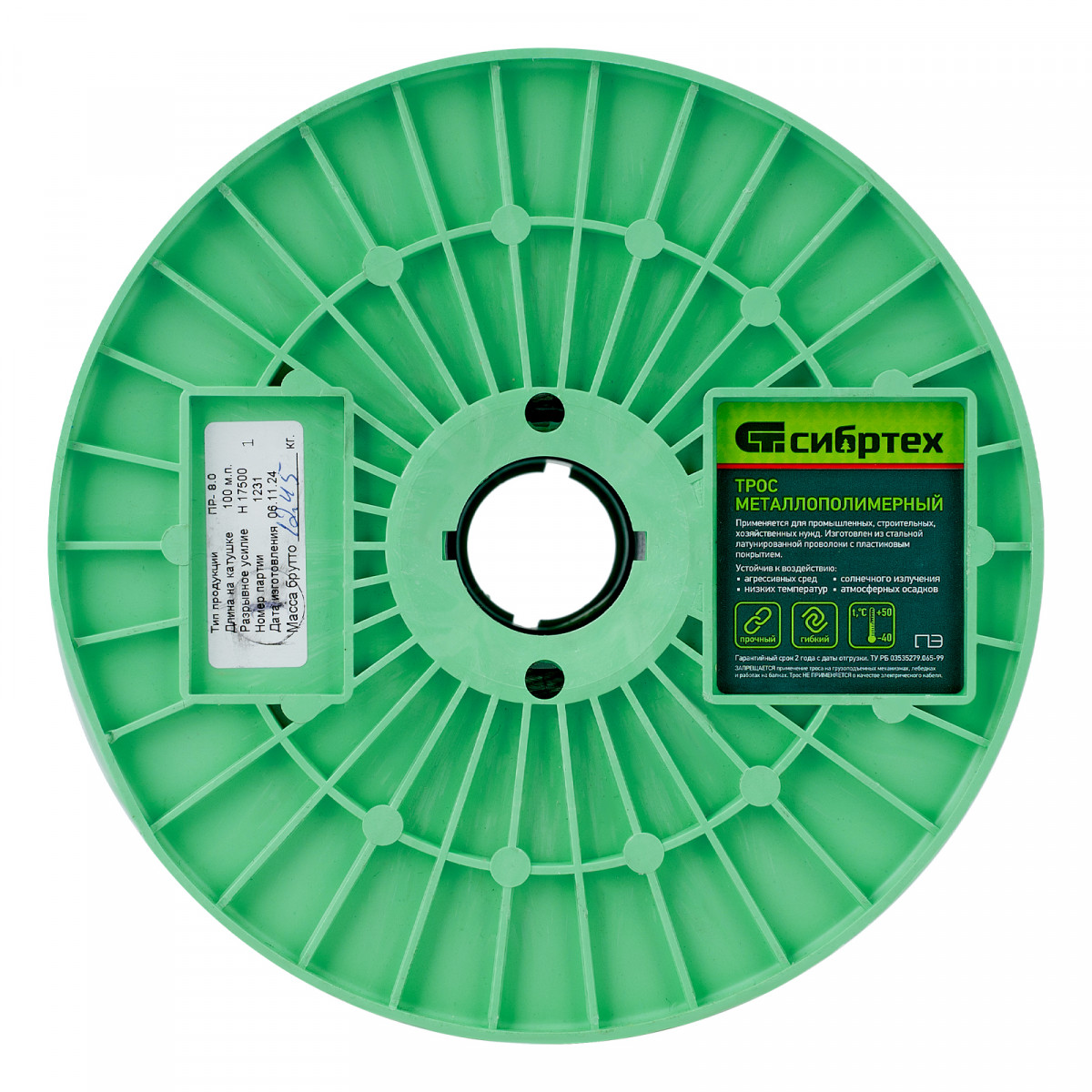 Трос металлополимерный прозрачный ПР-8.0, толщина 8.0 мм, катушка 100 метров Сибртех