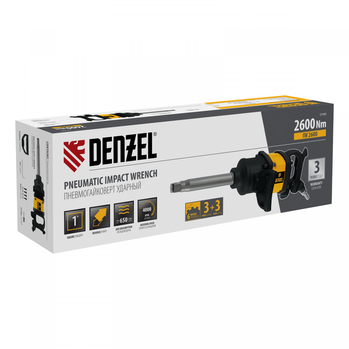 Ударный пневмогайковерт IW2600, 1", 4000 об/мин, 2600 Нм Denzel