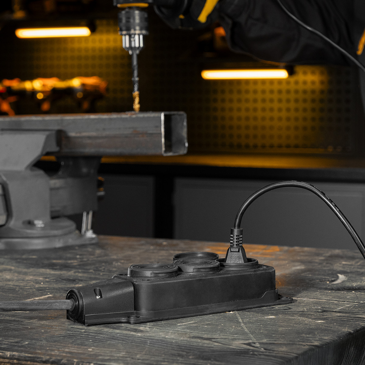 - Высокая степень защиты — удлинитель можно использовать даже во время выпадения осадков.