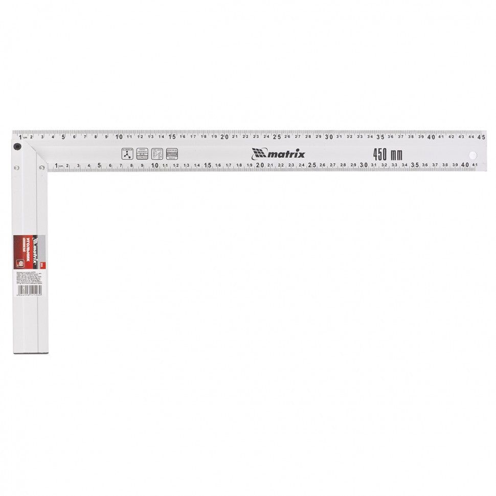Алюминиевый литой угольник Matrix 32475 длиной 450 мм используется для проверки и разметки прямых углов во время столярных и отделочных работ. Простой, но незаменимый инструмент повышает точность работы и позволяет получить качественный результат.