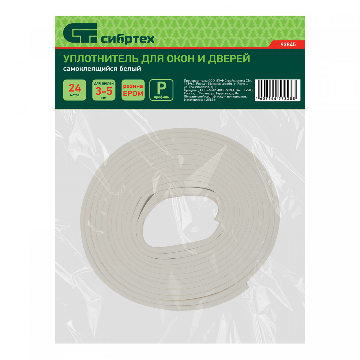 Белый уплотнитель Сибртех 93845 длиной 24 м, с профилем «Р», предназначен для оклеивания оконных рам и дверных проемов. Обеспечивает герметичное соединение с деревянной, пластиковой или металлической поверхностью, предотвращает попадание пыли и мусора в помещение, обеспечивает не только тепло-, но и звукоизоляцию.
