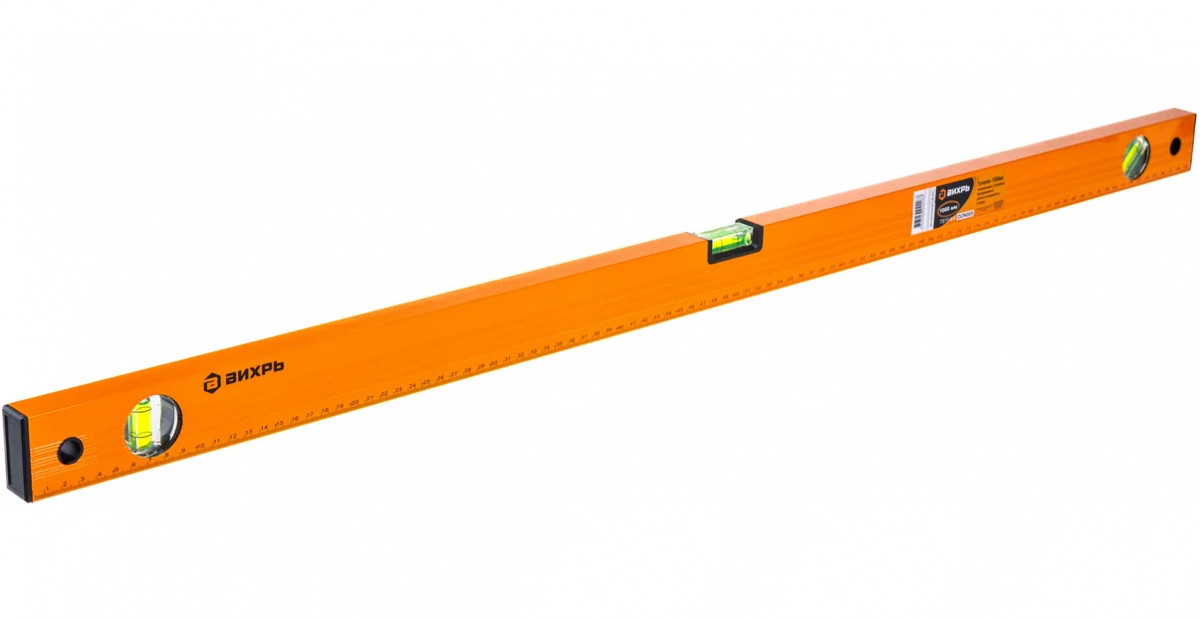 Уровень пузырьковый ВИХРЬ - измерительный инструмент при строительных, ремонтных и отделочных работах для поиска и исправления отклонения поверхностей. Корпус прочный и износостойкий, изготовлен из алюминия. Фрезерованная рабочая поверхность служит для уменьшения возможной погрешности при измерениях. Длина уровня 100см.