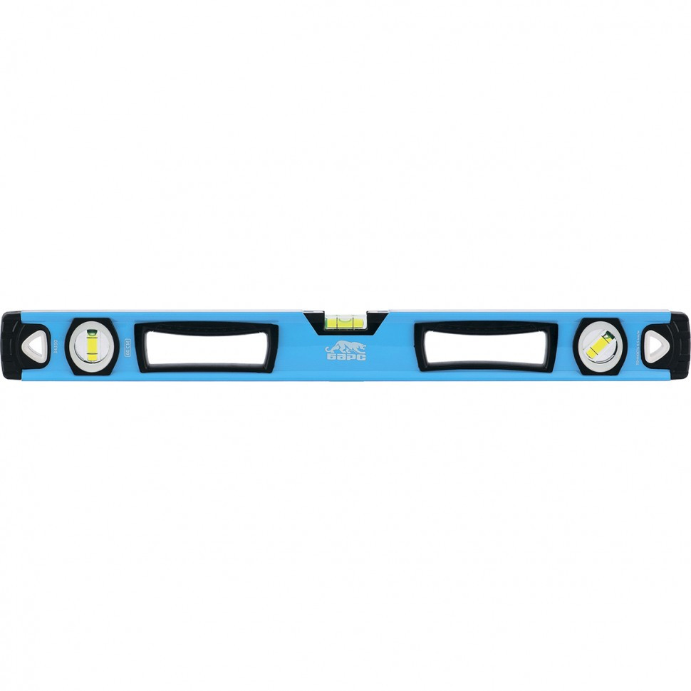 Фрезерованный алюминиевый уровень Барс 34430 длиной 1500 мм, с профилем 1,6 мм и ударопрочными заглушками, оснащен 3 глазками, которые позволяют проверить вертикальные, горизонтальные поверхности и соответствие наклонных поверхностей углу 45 градусов. Инструмент повышает точность строительных и ремонтных работ.Для определения отклонения вертикали 90 градусов необходимо использовать пузырьковую ампулу только в верхнем положении уровня. Только базовая поверхность является рабочей (противоположная ампуле 180 градусов).ПреимуществаИнструмент изготовлен из легкого и прочного алюминиевого профиля (марка 6063).Высокая точность работы достигается за счет фрезерованной рабочей части и двойного контроля при установке ампул.V-образная форма подошвы обеспечивает возможность фиксации инструмента на трубах при проведении сантехнических работ.Уровень выдерживает падения с небольшой высоты за счет заглушек из износостойкой термопластичной резины (TPR).