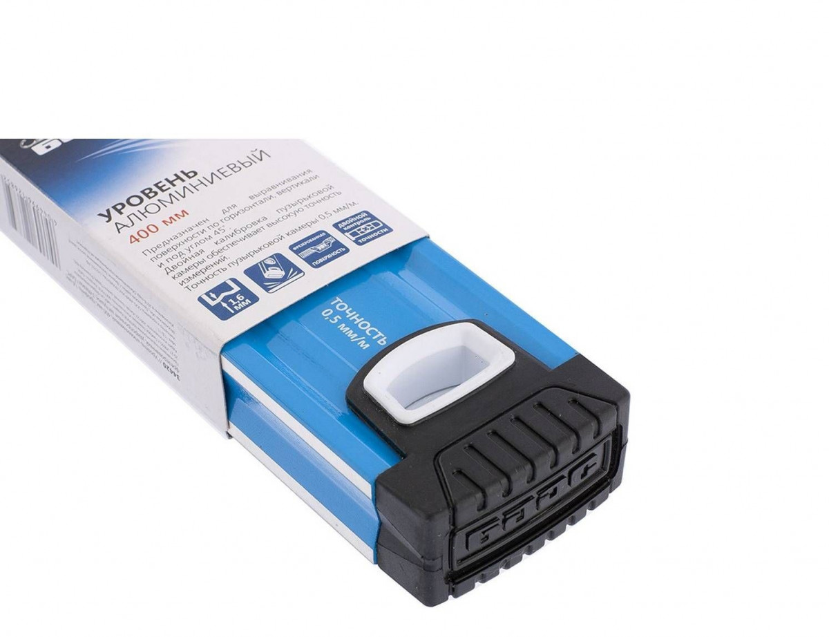 Уровень алюминиевый 400 мм профиль 1,6 мм фрезерованный ударопрочные заглушки 3 глазка Барс