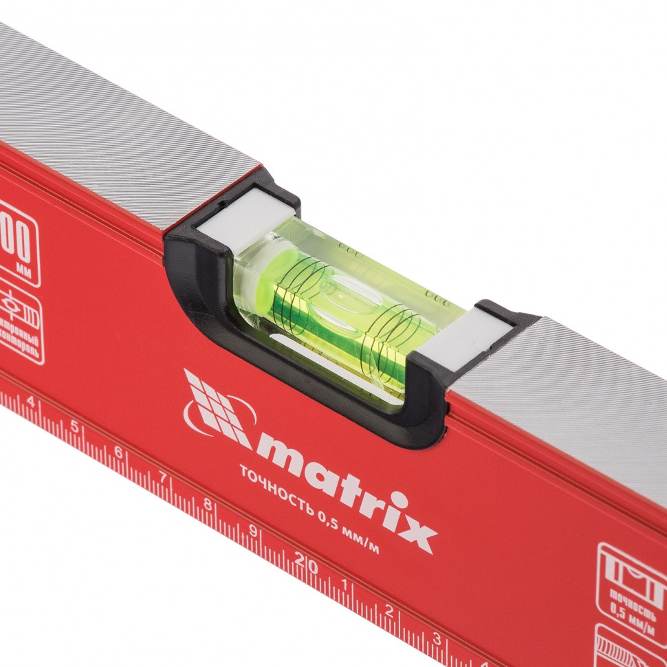 Уровень алюминиевый фрезерованный Matrix 34200 длиной 400 мм, с 3 глазками, предназначен для определения отклонений от горизонтальной и вертикальной поверхностей и угла 45°. Обеспечивает высокую точность полученных результатов, пригодится для выполнения строительных и отделочных работ.