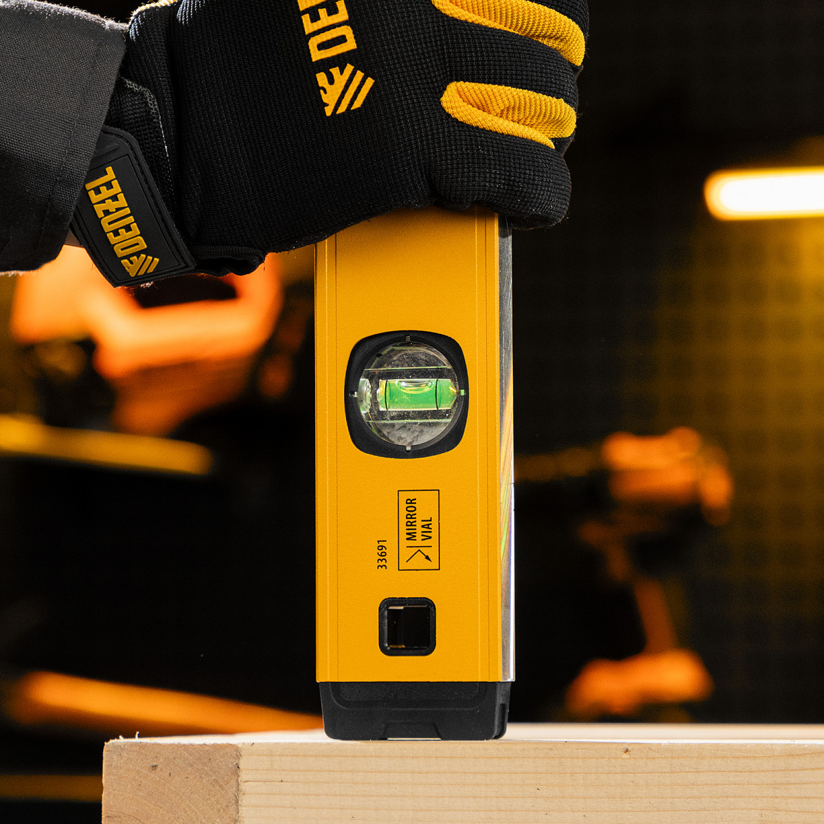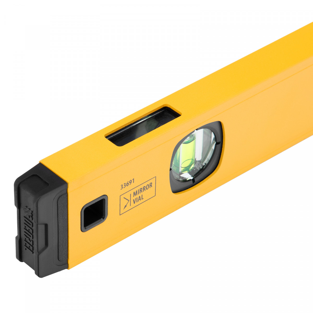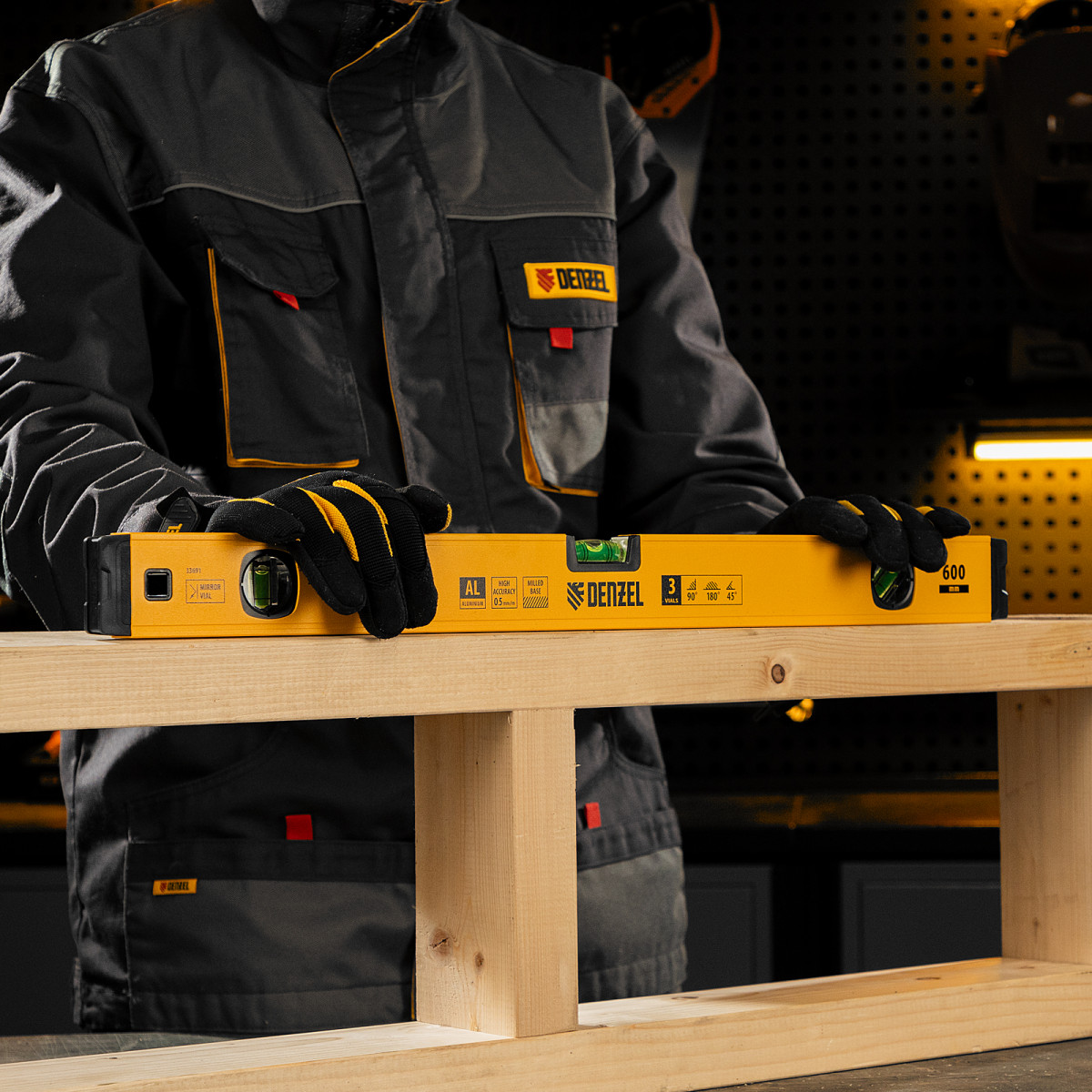 Алюминиевый фрезерованный уровень Denzel 33691 длиной 600 мм, с магнитом и 3 глазками, из которых 1 зеркальный, предназначен для контроля отклонений от горизонтальной, вертикальной и поверхности под углом 45° с точностью 0,5 мм/м. 3 пузырьковые камеры 90°, 180° и 45° позволяют быстро проверить правильность разметки. Инструмент незаменим при проведении строительных, ремонтных, сантехнических работ.
