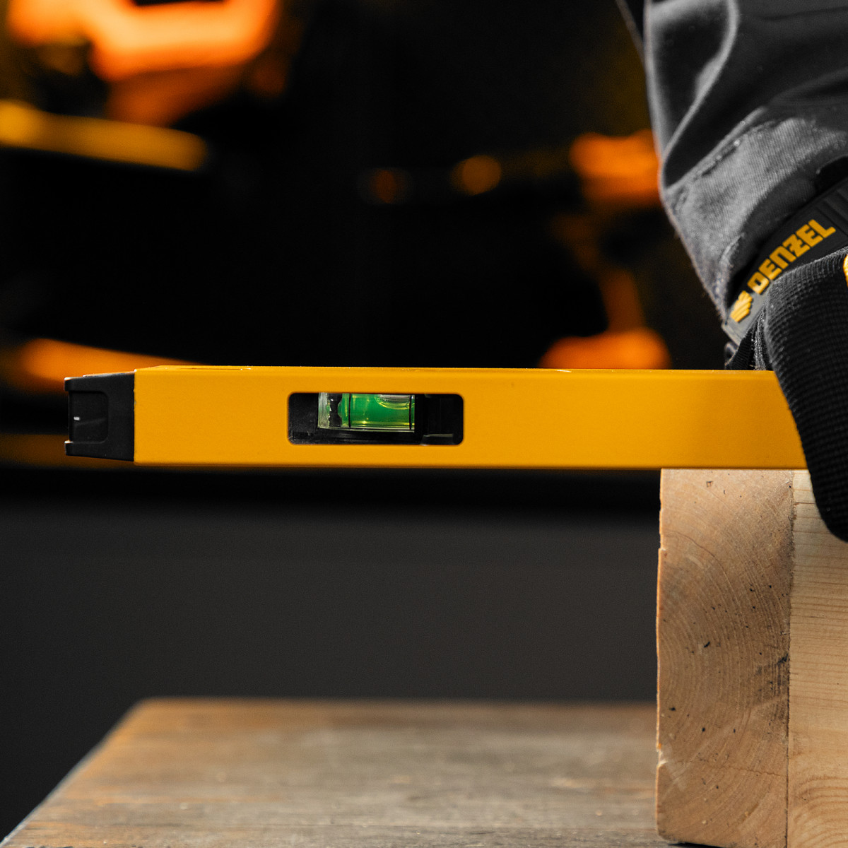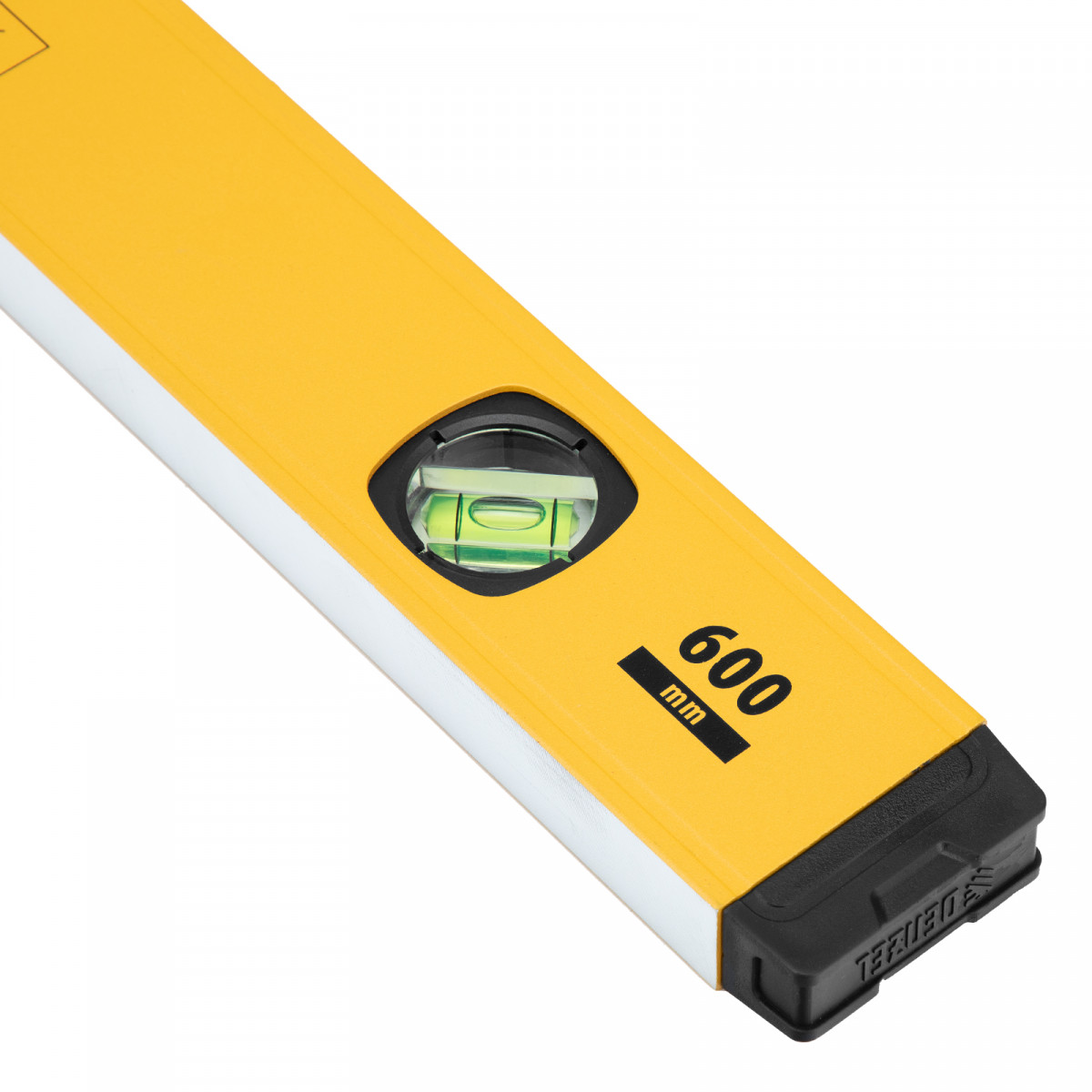 Уровень алюминиевый, магнит, фрезерованный, 3 глазка (1 зеркал.) 0,5 мм/м, 600 мм Denzel