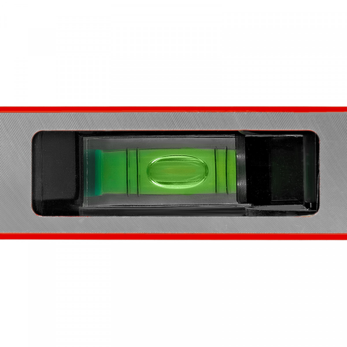 Алюминиевый магнитный уровень Matrix 34704 длиной 400 мм, усиленный, оснащен 3 глазками и одним зеркальным отражателем. С его помощью можно выявить отклонения от вертикали, горизонтали и угла 45 градусов. Встроенный зеркальный глазок повышает удобство работы, позволяя легко считывать показания.,Для определения отклонения вертикали 90 градусов необходимо использовать пузырьковую ампулу только в верхнем положении уровня. Только базовая поверхность является рабочей (противоположная ампуле 180 градусов).