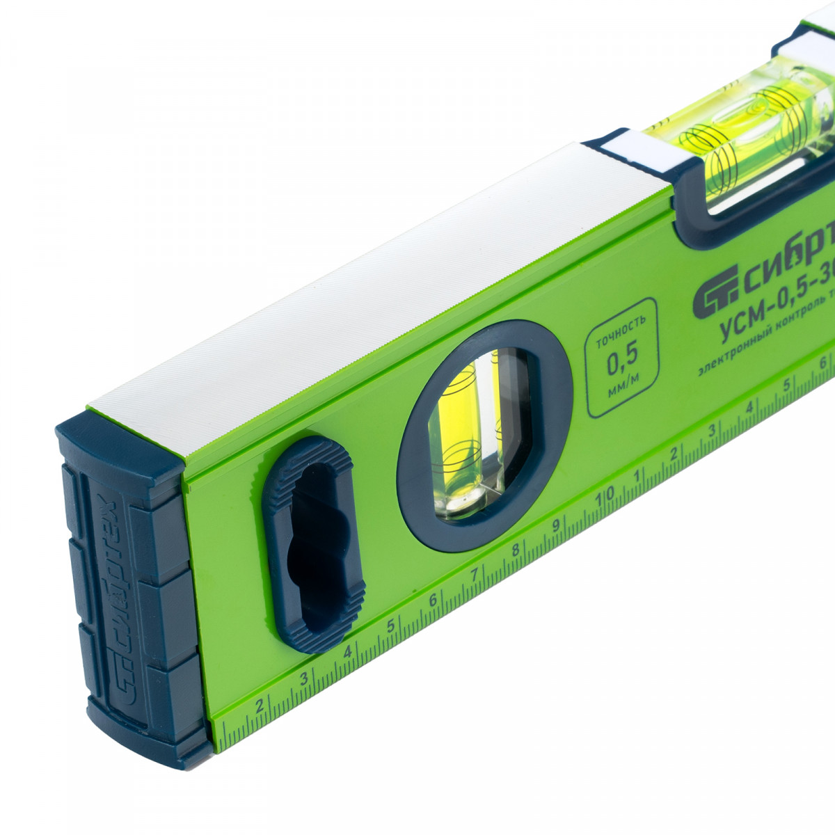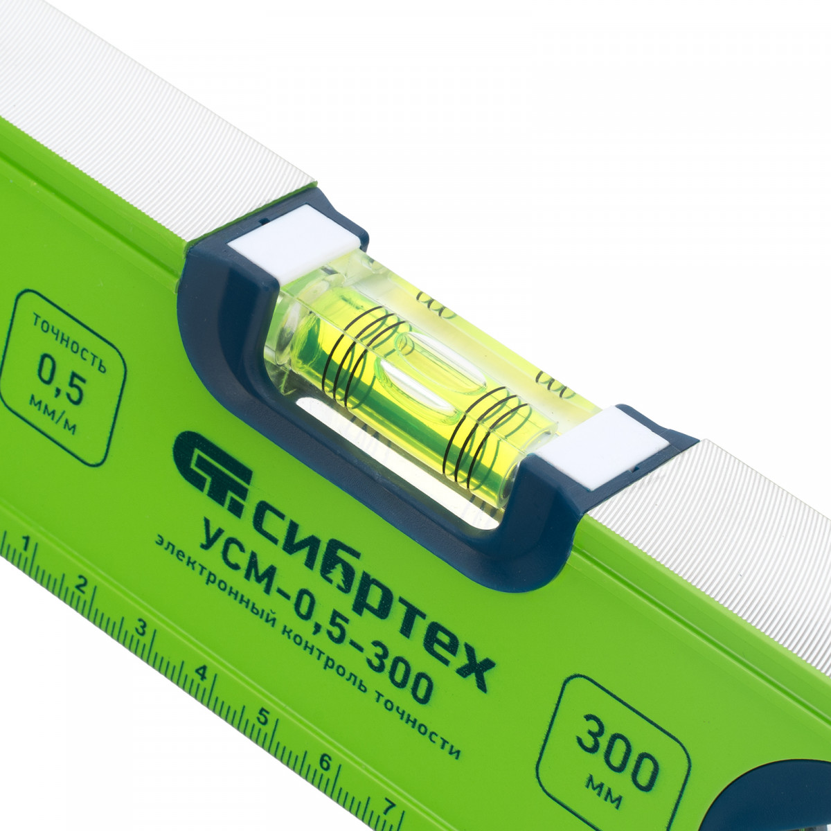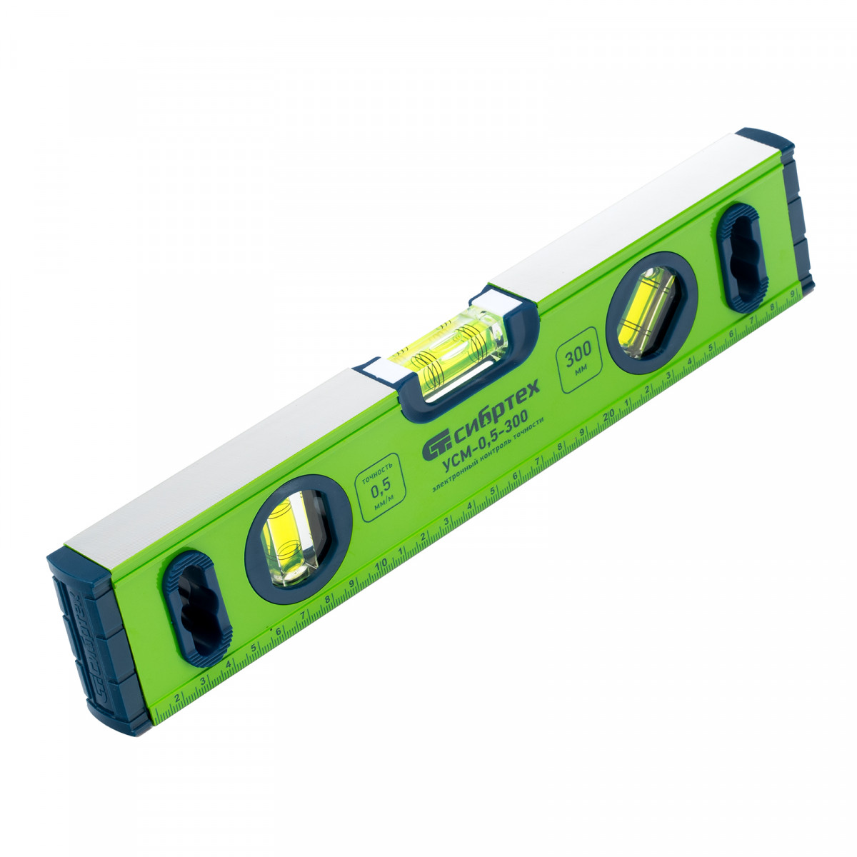 Алюминиевый фрезерованный уровень Сибртех УСМ-0,5-300 34111 длиной 300 мм, магнитный, с 3 глазками, поможет найти отклонения от горизонтальной и вертикальной плоскостей и угла 45 градусов. Инструмент незаменим при осуществлении строительных и ремонтных работ, т.к. обеспечивает высокую точность работы.,Для определения отклонения вертикали 90 градусов необходимо использовать пузырьковую ампулу только в верхнем положении уровня. Только базовая поверхность является рабочей (противоположная ампуле 180 градусов).