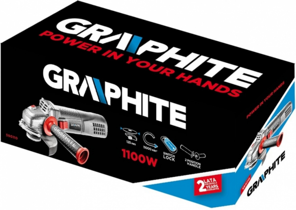 Угловая шлифовальная машина GRAPHITE 59G110 предназначен для резки, зачистки и шлифовки. Предусмотрена система смены положения защитного кожуха без использования инструментов, что повышает удобство и скорость работы. Для продолжительных работ данная модель оснащена двухступенчатой кнопкой с защитой от непреднамеренного пуска. Для удобства работы с труднодоступными поверхностями инструмент комплектуется двухпозиционной дополнительной рукояткой.