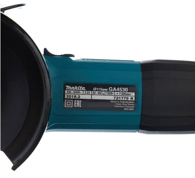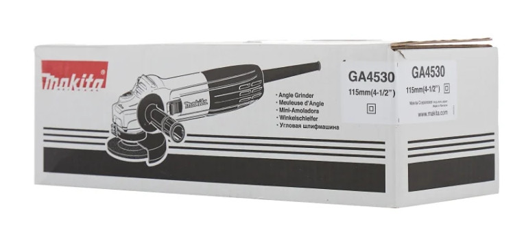 Угловая шлифмашина Makita GA 4530 применяется для выполнения сложных отрезных и шлифовальных работ, а также работ по зачистке металла, камня, кирпича. Инструмент прост в использовании, имеет удобную компактную форму корпуса. Смена дисков и фиксация защитного кожуха производятся без дополнительных инструментов.
